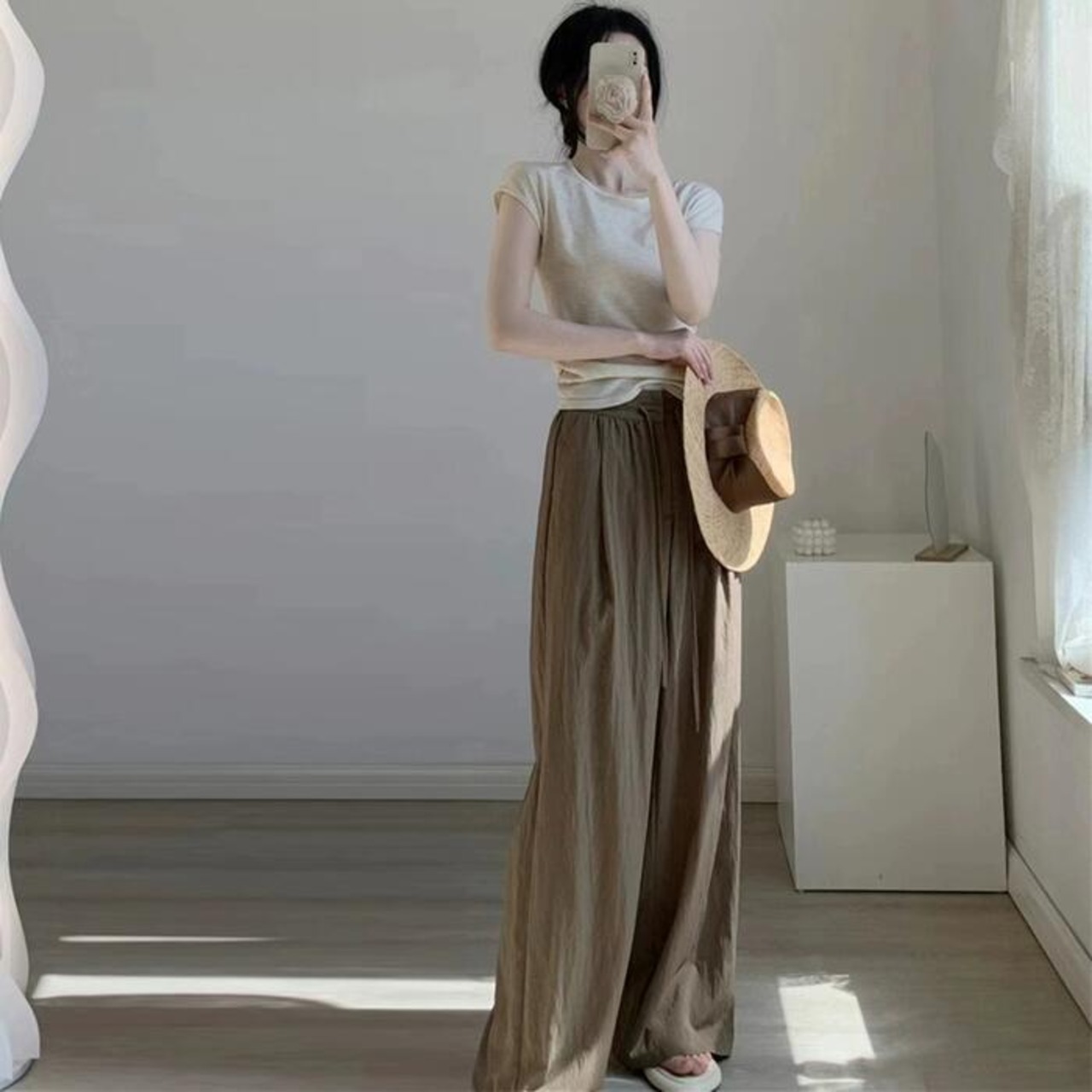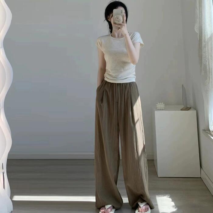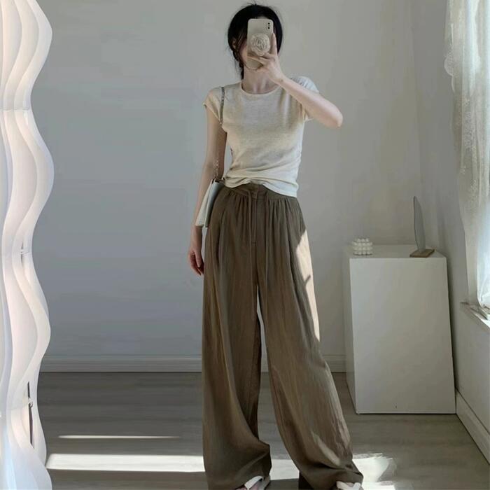 大きいサイズ セットアップ 2点セット トップス パンツ Tシャツ ロングパンツ ワイドパンツ レディース きれいめ カジュアル 大人 可愛い フェミニン 半袖 リラックス ナチュラル 体型カバー 韓国 シンプル グレー ブラウン 春 秋 夏 20代 30代 40代 50代