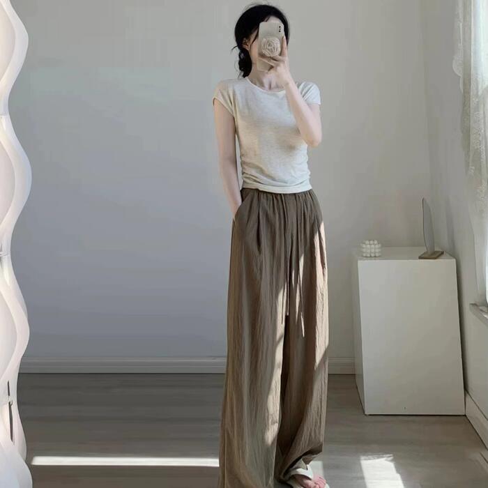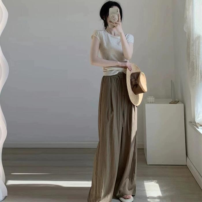 フィット感のある半袖Tシャツ&ワイドパンツセット。