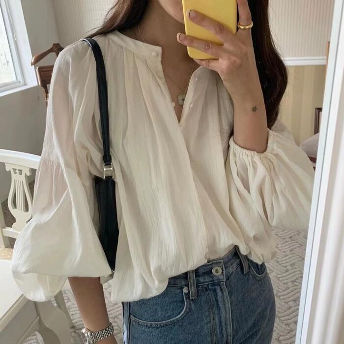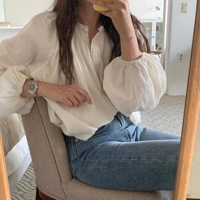 ふっくら立体的な袖のフォルムが可愛いブラウス。