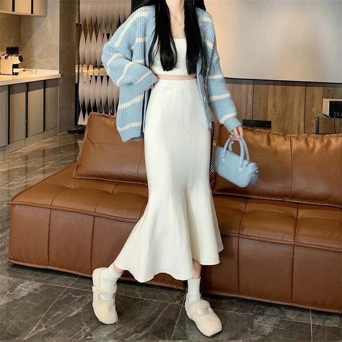 ひらりと揺れる裾が華やかなマーメイドニットスカート。