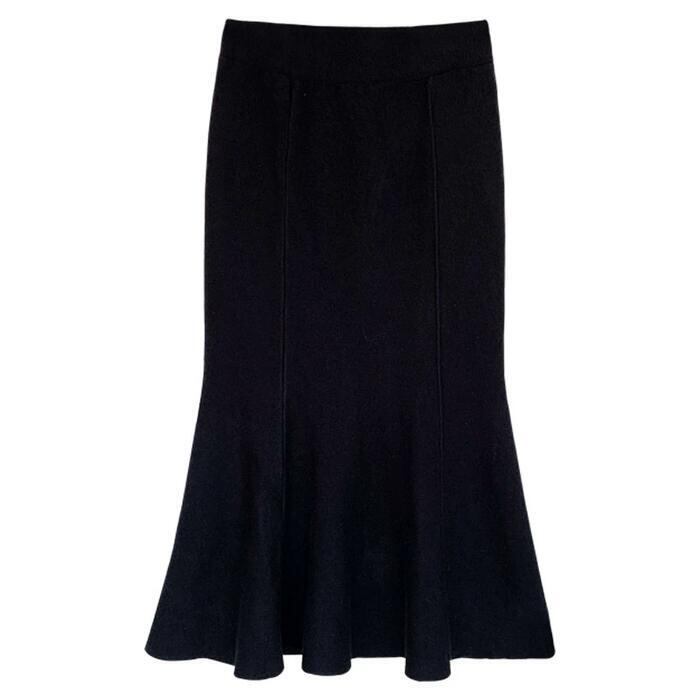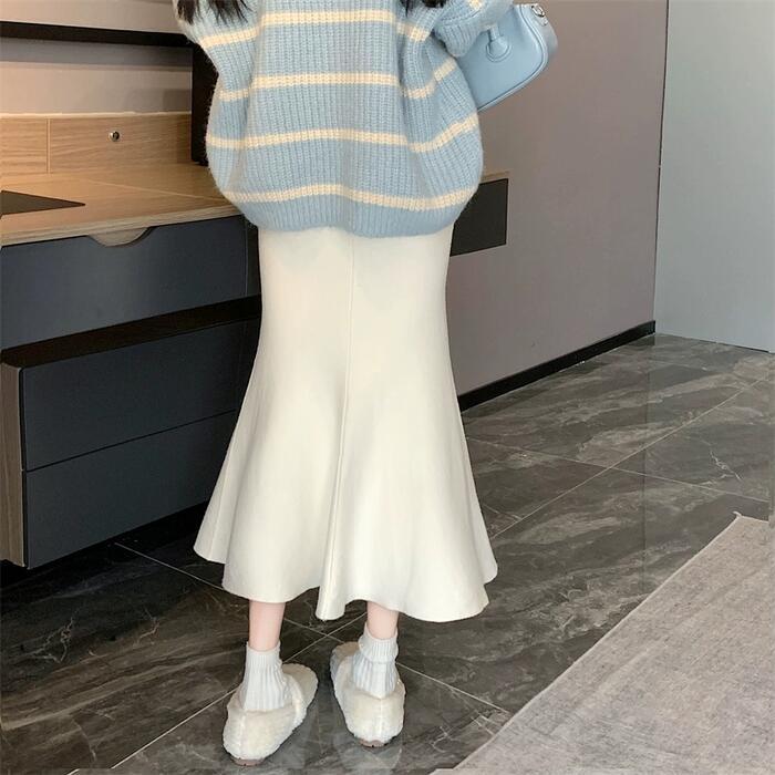 全3色 シンプル ボトムス ニット スカート マーメイド フレアスカート レディース エレガント きれいめ カジュアル ミモレ丈 大人 可愛い フェミニン ウエストゴム 体型カバー ナチュラル ホワイト 白 ブラック 黒 ベージュ 春 夏 秋 20代 30代 40代 50代