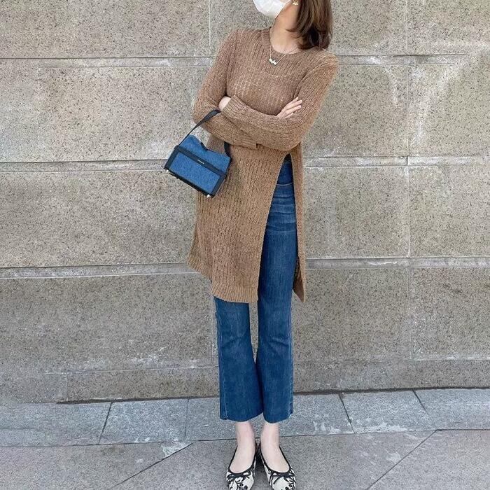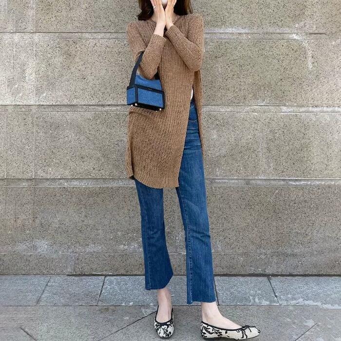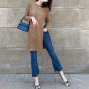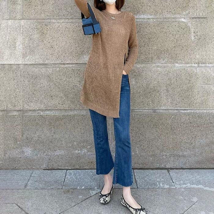 ロングスリットが抜け感たっぷりなローゲージニット。