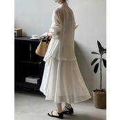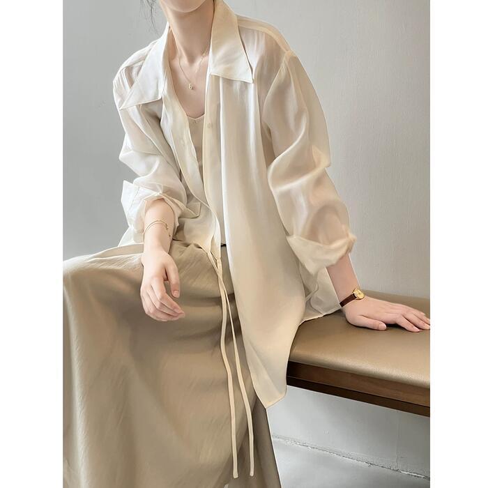 透け感のあるさらりとした生地が上品フェミニンな印象。