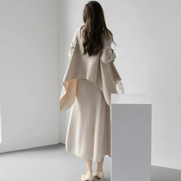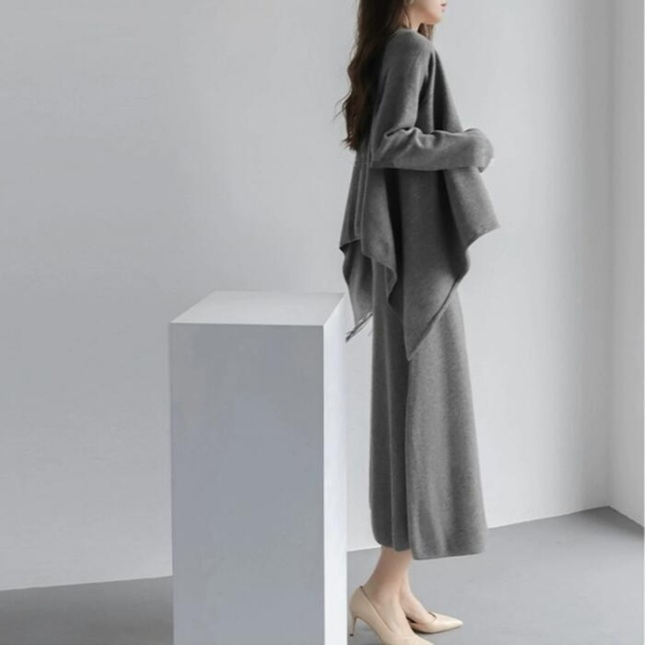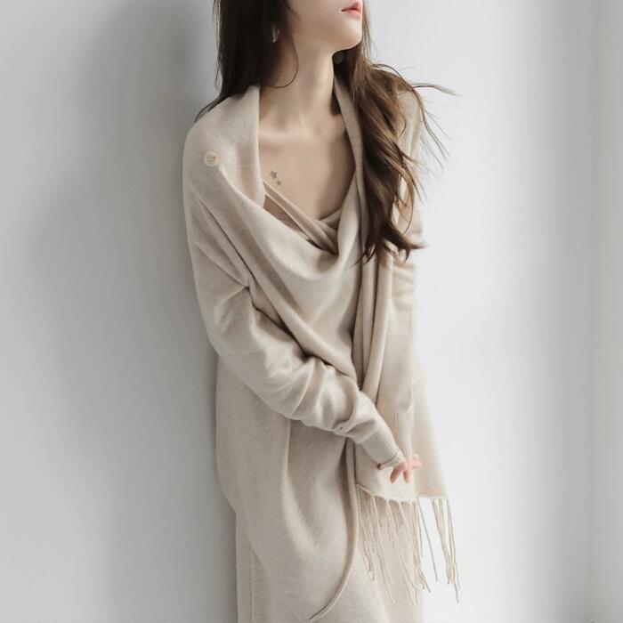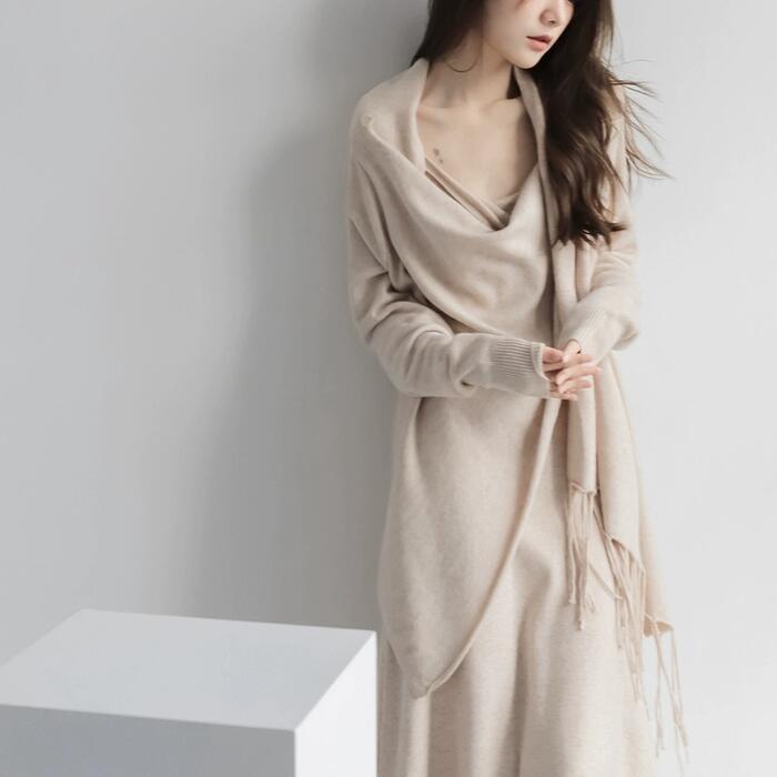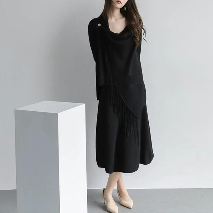 全3色 大きいサイズ トップス ニット カーディガン ショール 羽織り レディース エレガント きれいめ カジュアル 長袖 大人 可愛い フェミニン アシンメトリー シンプル ゆったり 体型カバー 韓国 ブラック 黒 ベージュ グレー 春 冬 秋 20代 30代 40代 50代