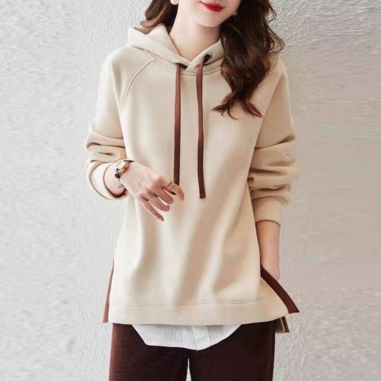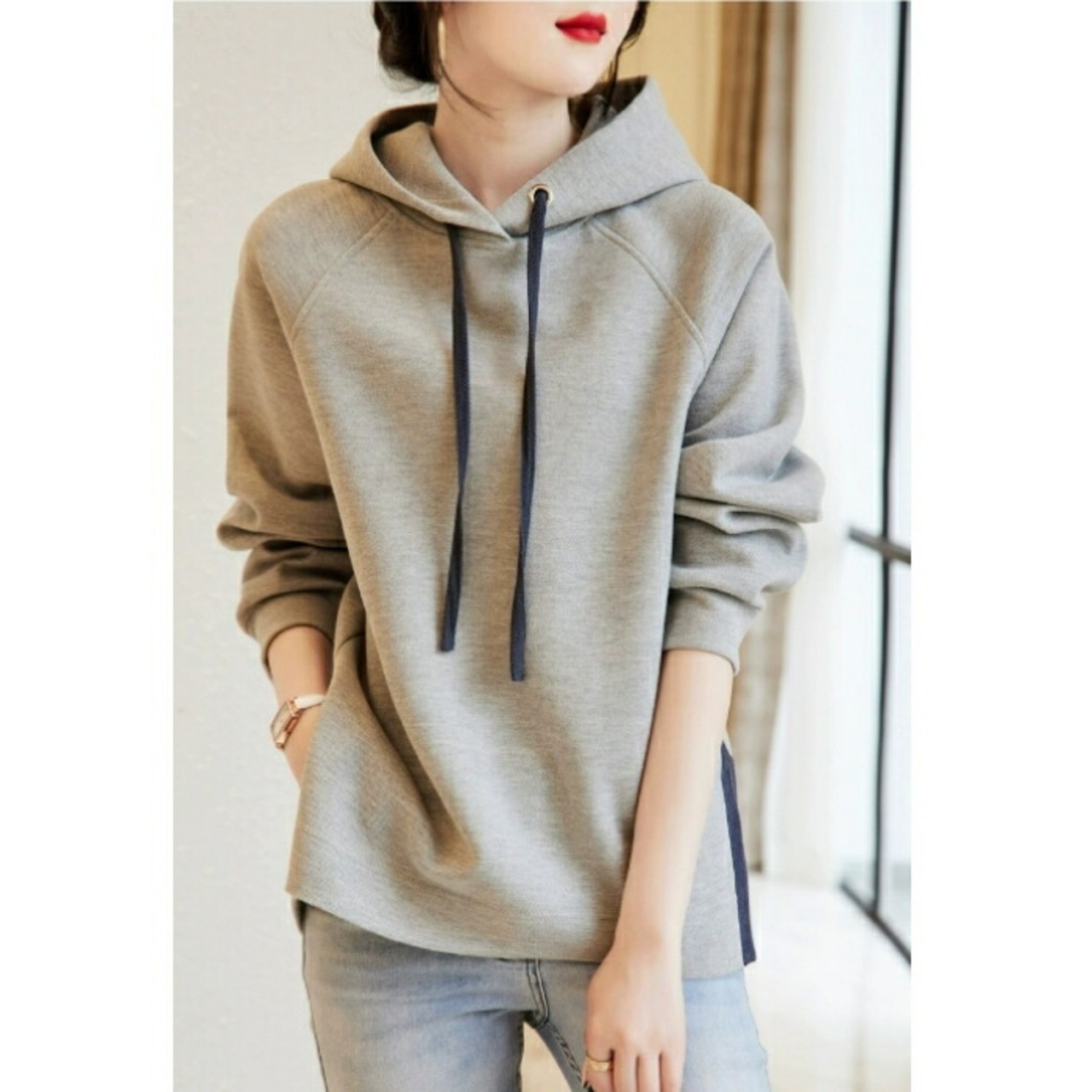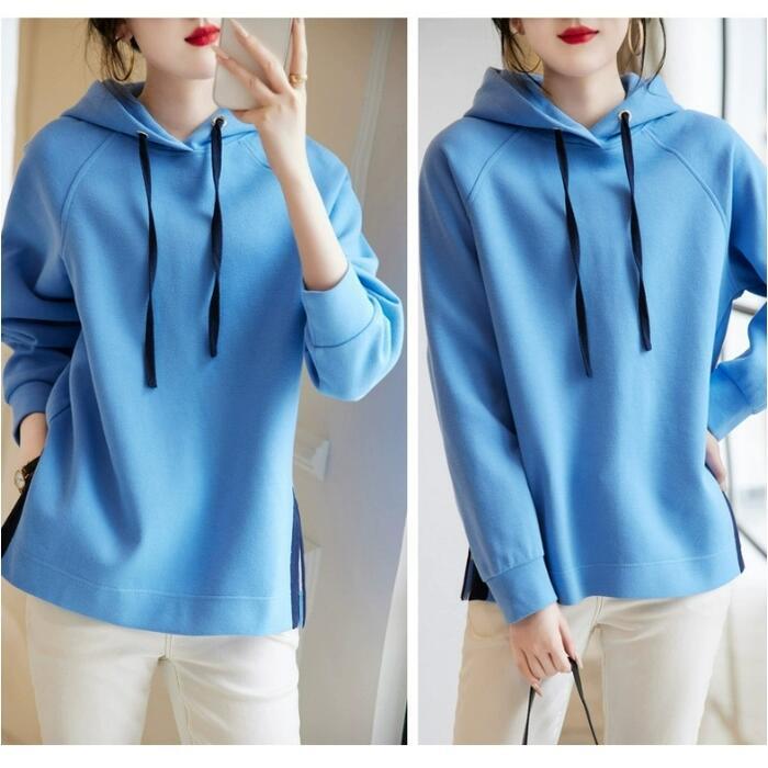 サイドスリットがポイントのカジュアルなパーカー。