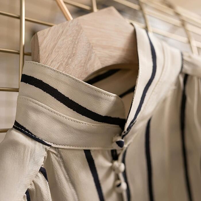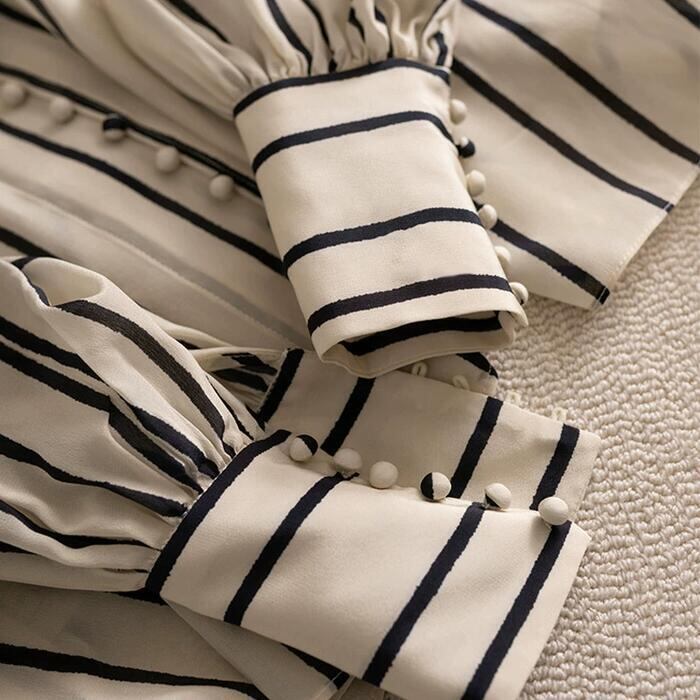 透け感のある、爽やかな印象のストライプ柄ブラウス。