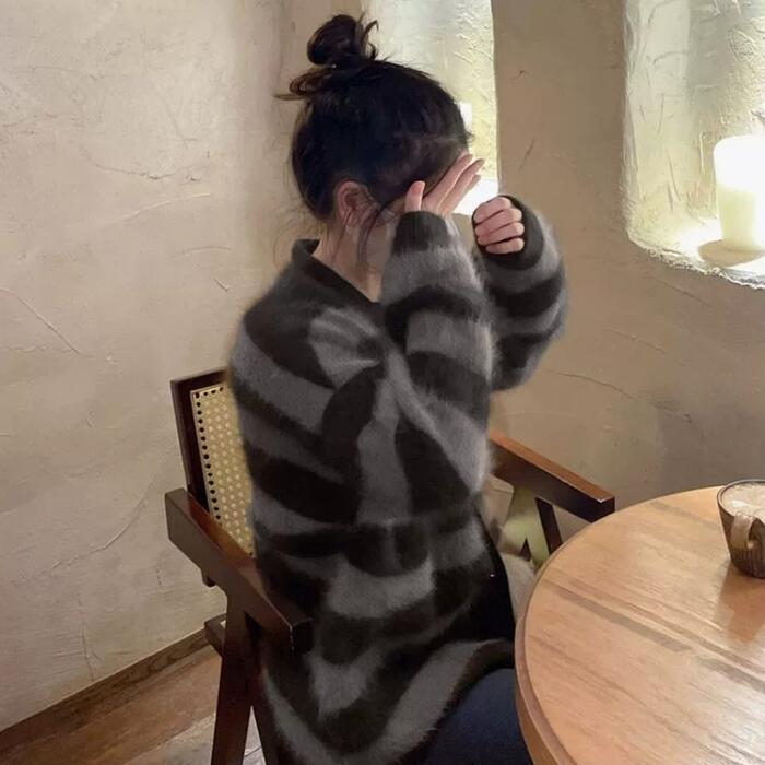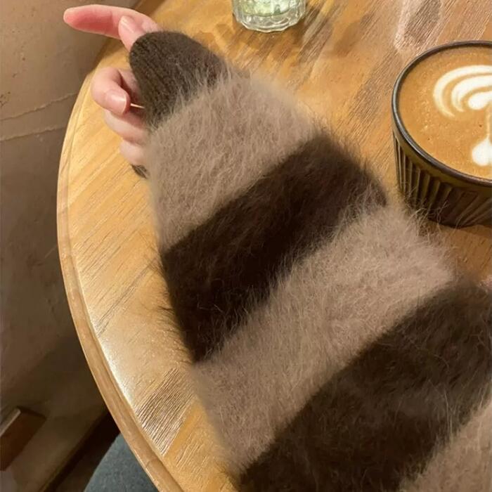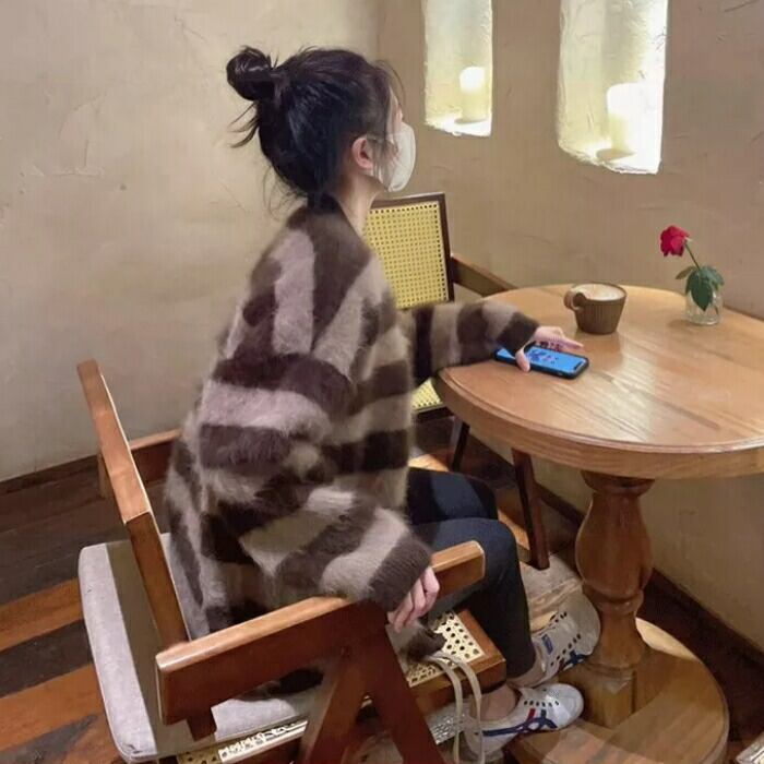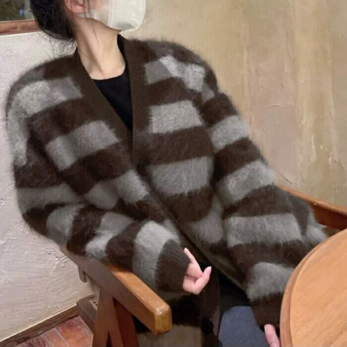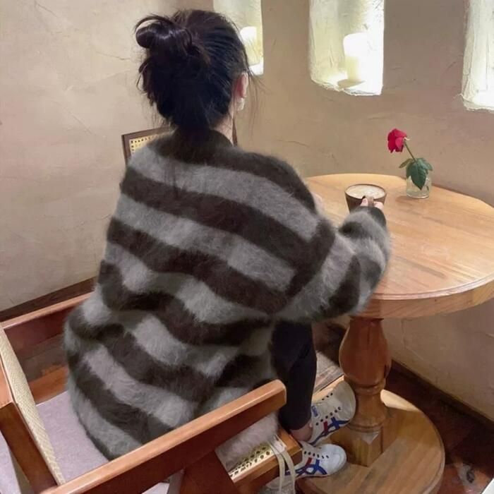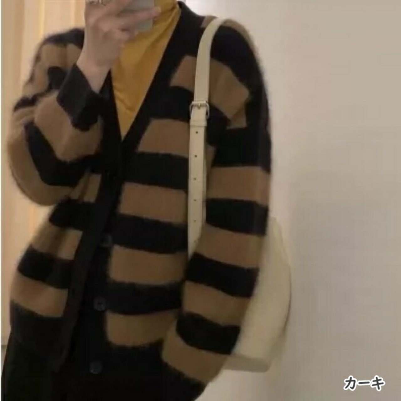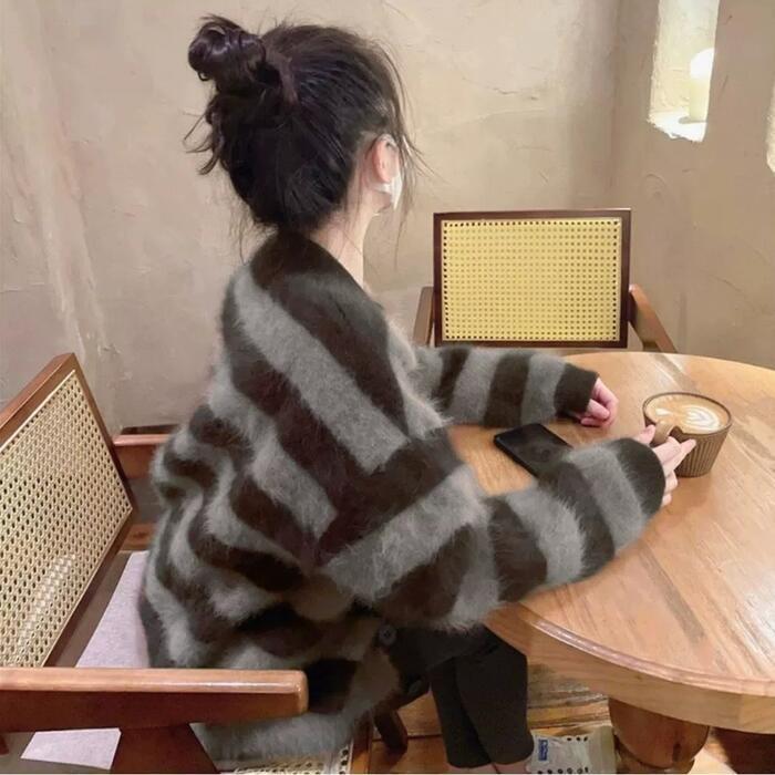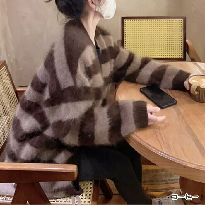 ふわふわシャギーが可愛いボーダーニットカーディガン。