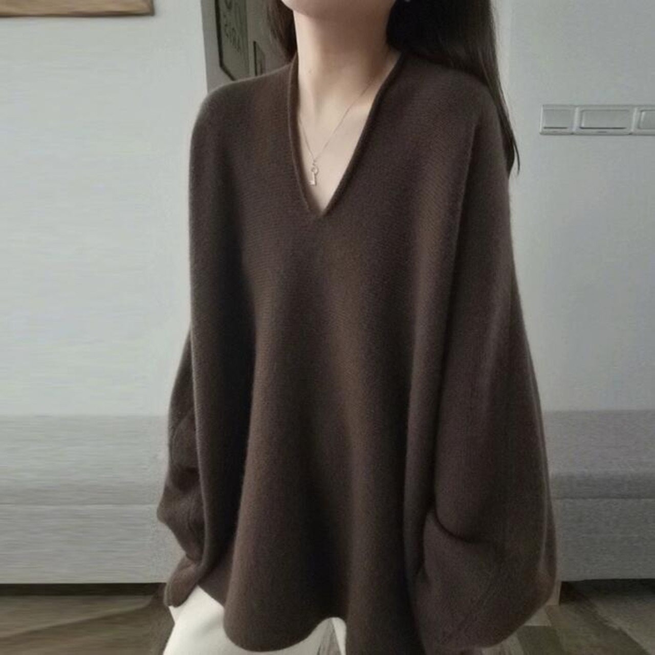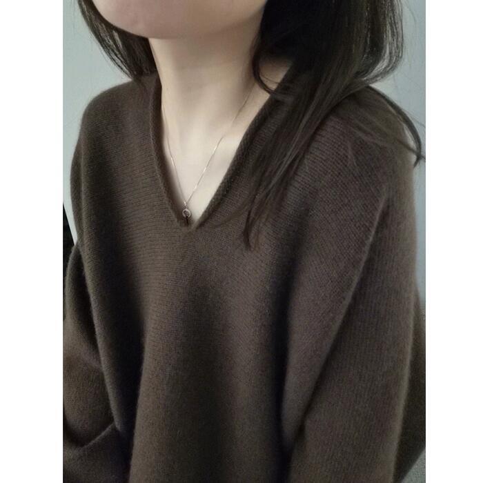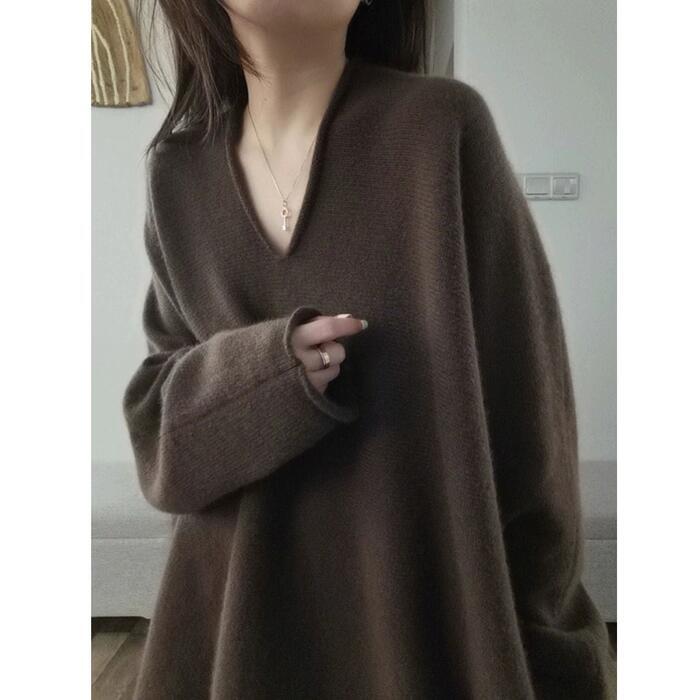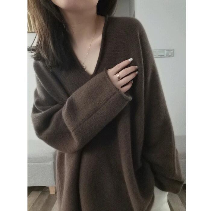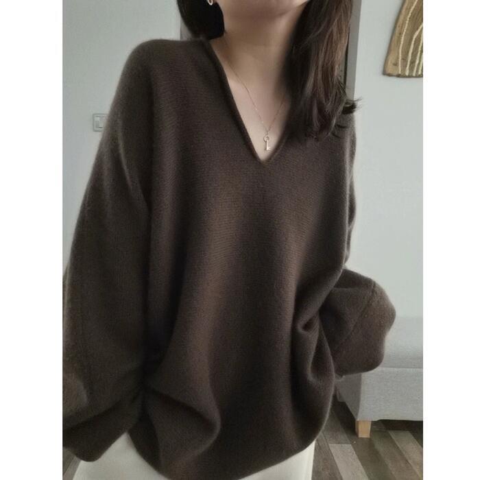 大きいサイズ トップス ニット セーター カットソー プルオーバー レディース エレガント きれいめ カジュアル 長袖 大人 可愛い Vネック 上品 フェミニン ゆったり シンプル 体型カバー おしゃれ 韓国 ブラウン 春 秋 冬 20代 30代 40代 50代
