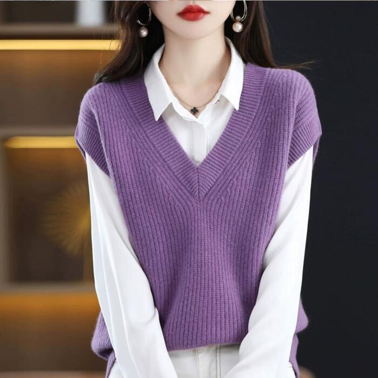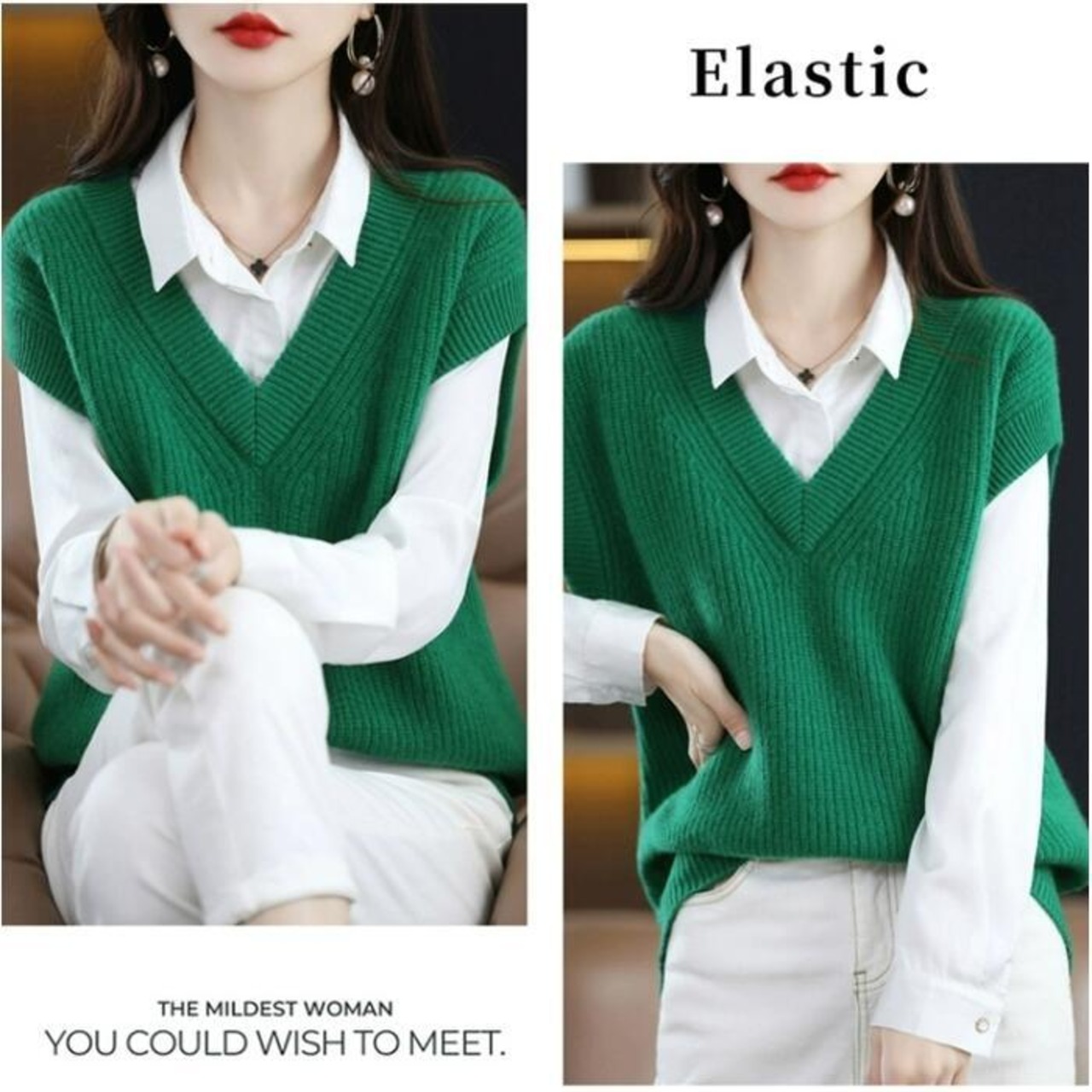 全4色 大きいサイズ 体型カバー おしゃれ シンプル レイヤード トップス ニット ベスト ジレ セーター カットソー プルオーバー レディース エレガント きれいめ カジュアル ノースリーブ 大人 可愛い フェミニン Vネック パープル グリーン 緑 ホワイト 白 ブラウン 春 秋 冬 20代 30代 40代 50代