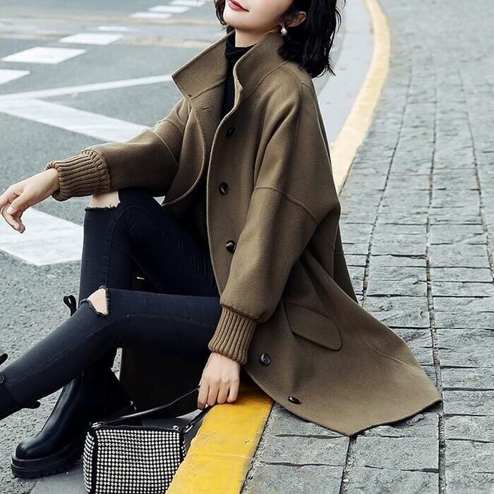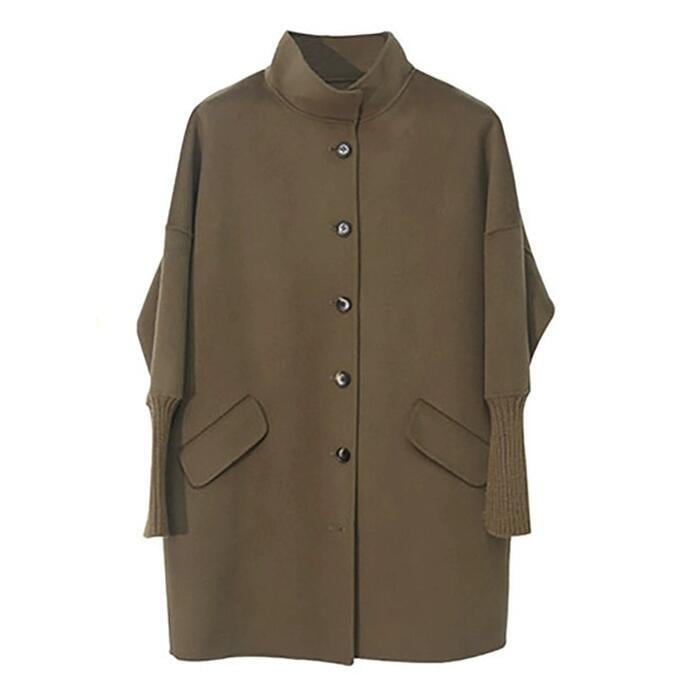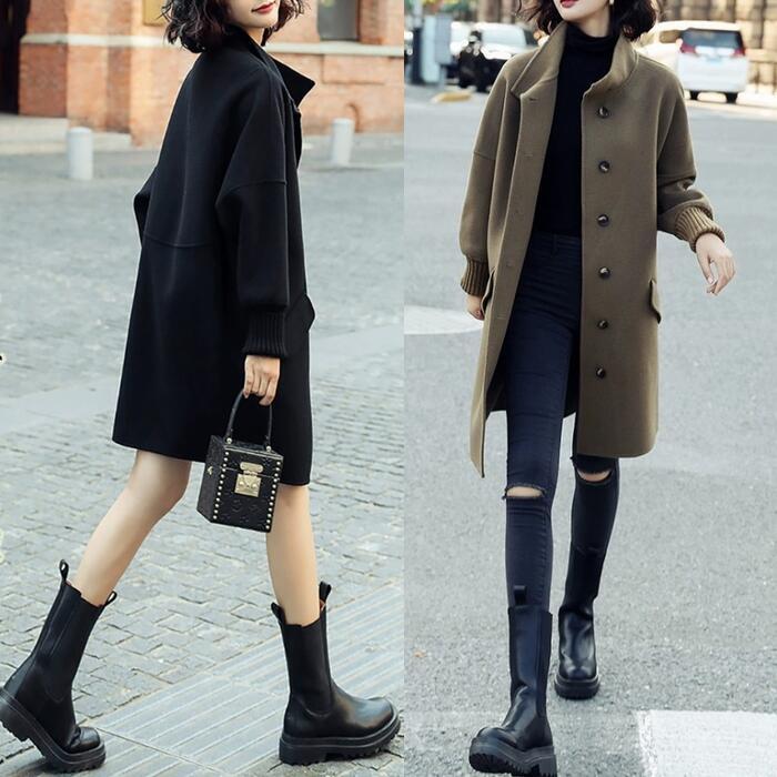 全2色 大きいサイズ シンプル おしゃれ アウター コート ジャケット チェスターコート ステンカラー ハイネック レディース エレガント きれいめ カジュアル 長袖 大人 可愛い フェミニン かっこいい トラッド モード 韓国 体型カバー カーキ ブラック 黒 春 秋 冬 20代 30代 40代 50代