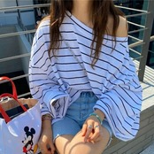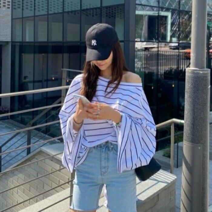 たっぷりとしたフレアな袖が可愛いボーダーTシャツ。