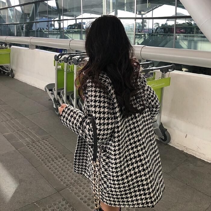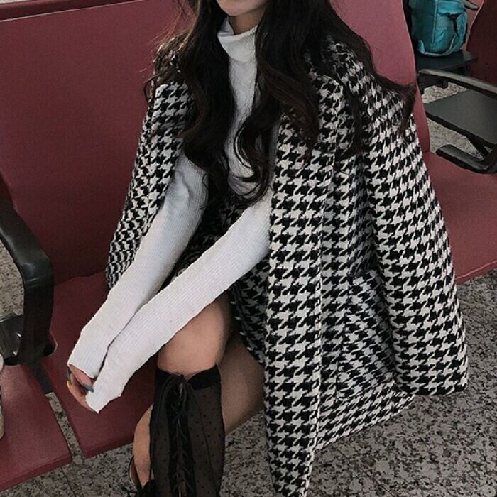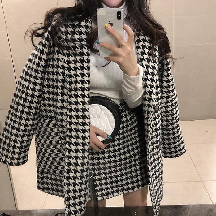 大きいサイズ おしゃれ クラシカル セットアップ 2点セット 千鳥格子 ジャケット コート テーラード スカート ショート丈 レディース エレガント きれいめ カジュアル 大人 可愛い フェミニン 体型カバー 韓国 ゆったり ブラック 黒 ホワイト 白 春 秋 冬 20代 30代 40代 50代