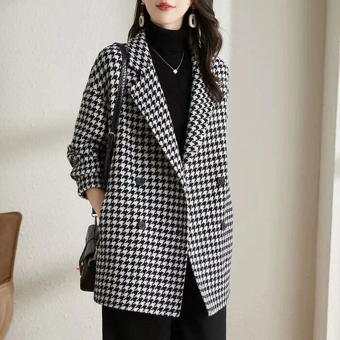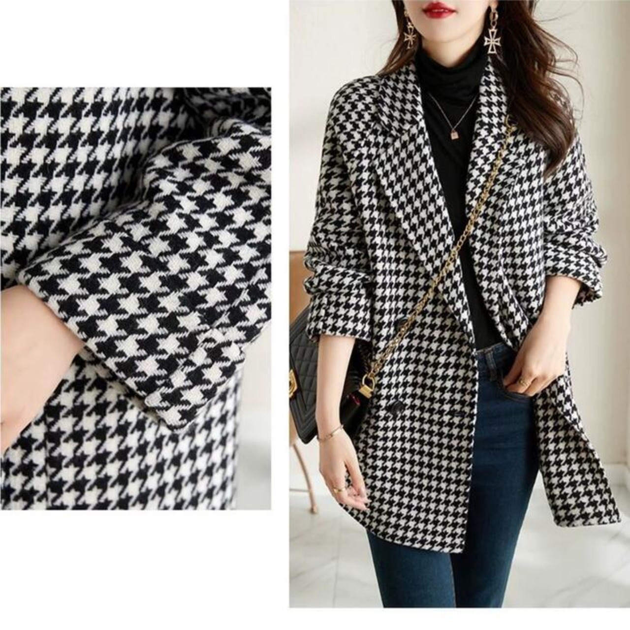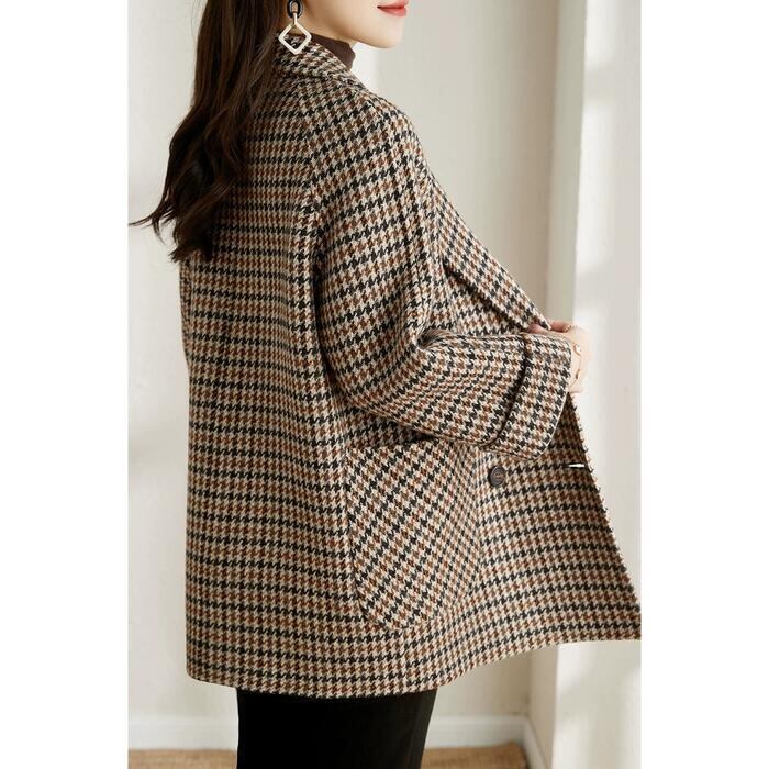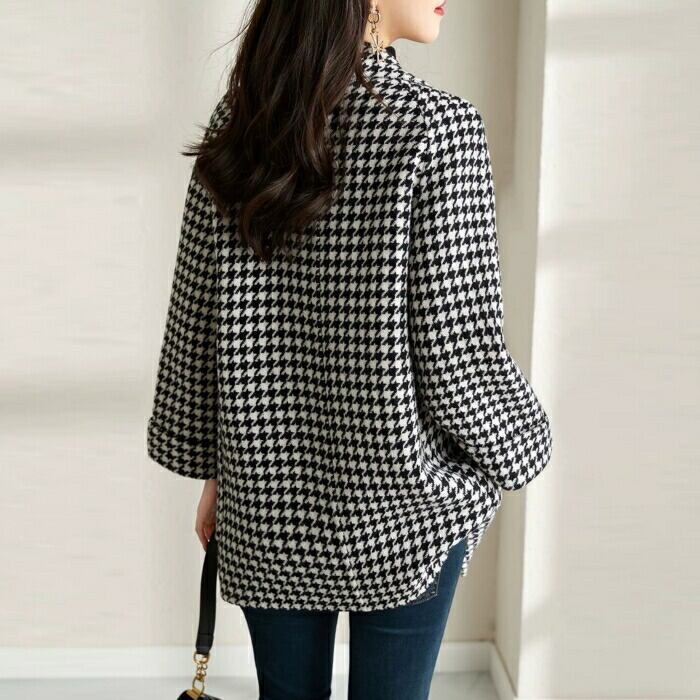 クラシカルな千鳥格子柄のミディコート。