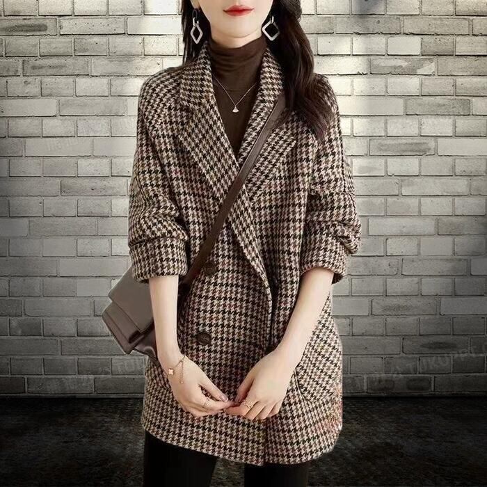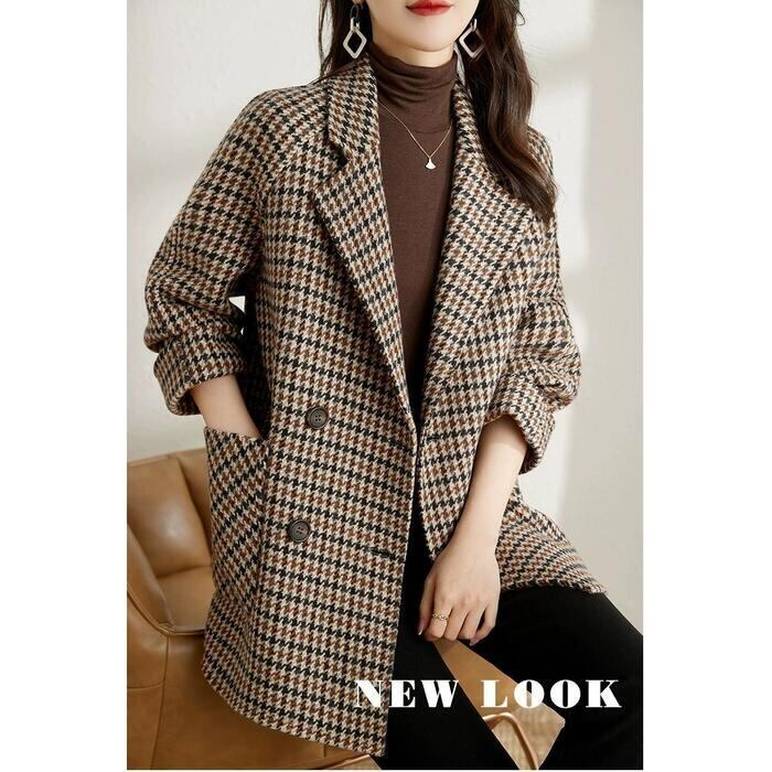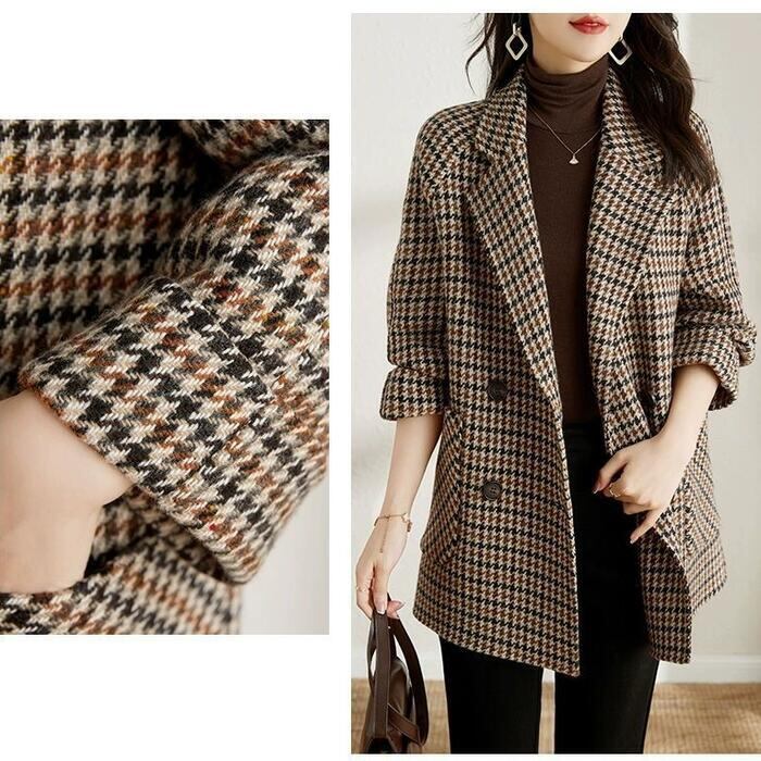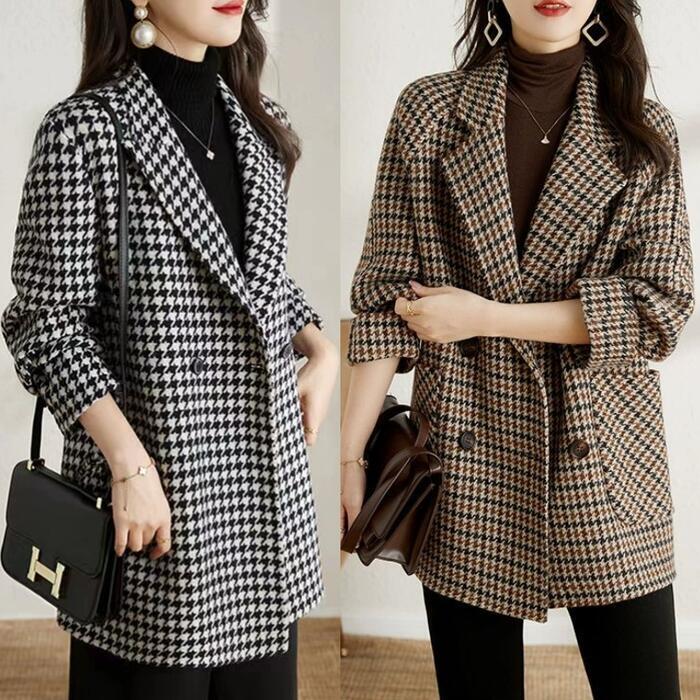全2色 大きいサイズ アウター コート 千鳥格子 チェスター ジャケット テーラード レディース エレガント きれいめ カジュアル 長袖 大人 可愛い フェミニン 中綿 クラシカル トラッド 韓国 おしゃれ 体型カバー ブラウン ブラック 黒 春 秋 冬 20代 30代 40代 50代