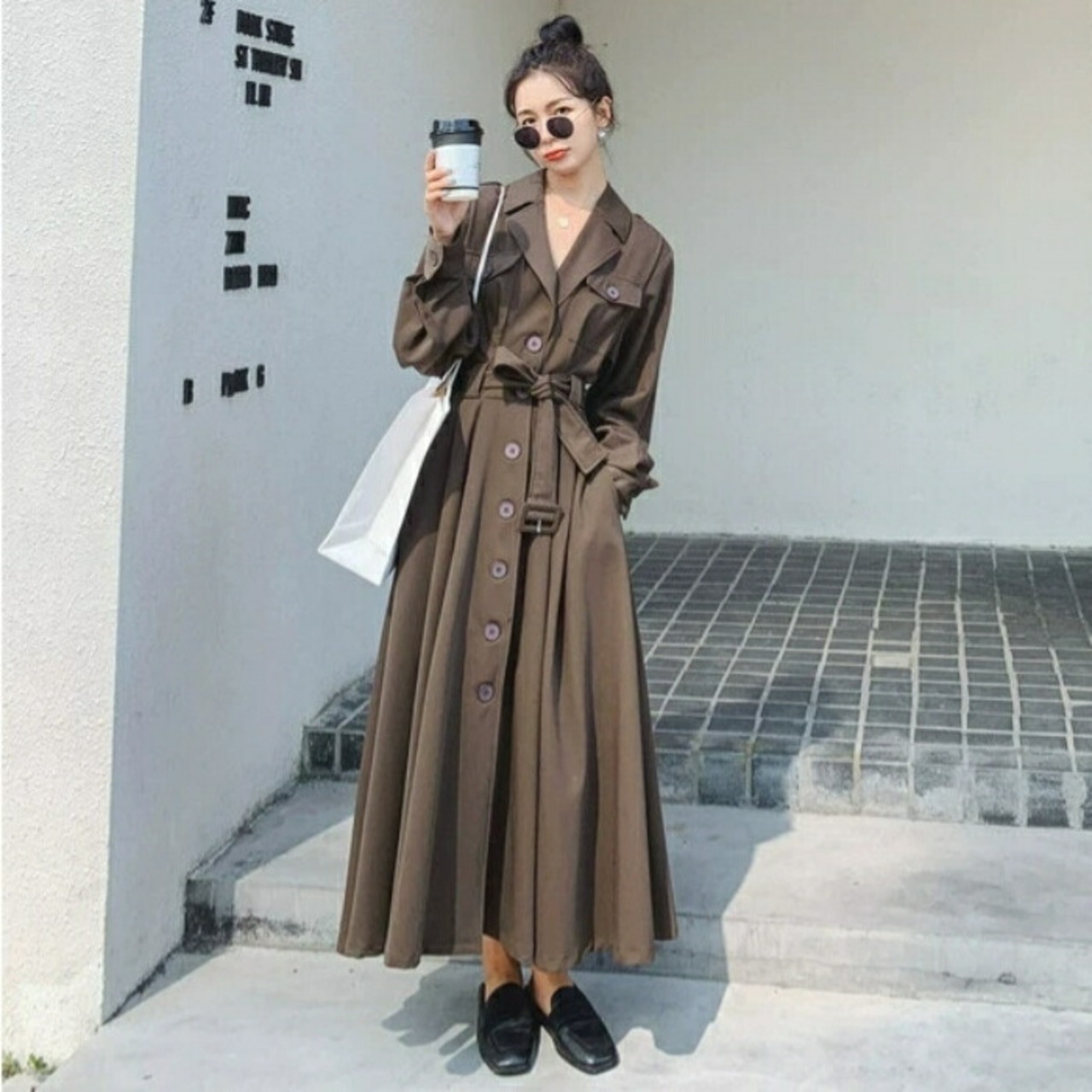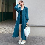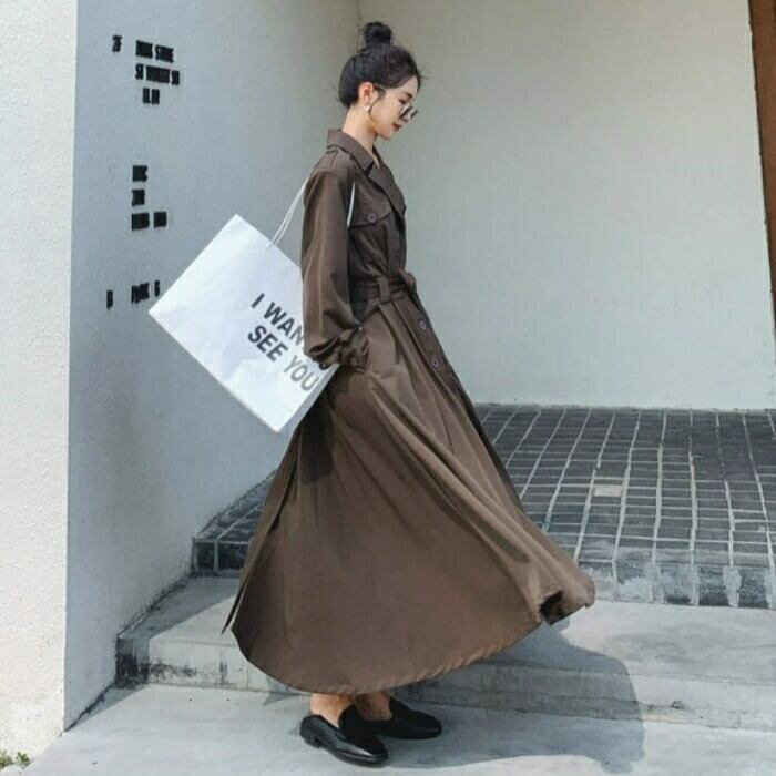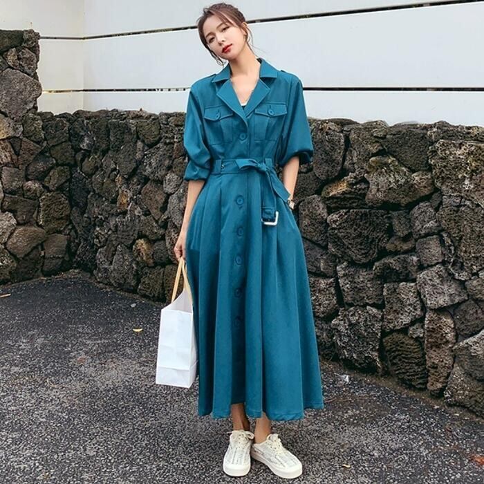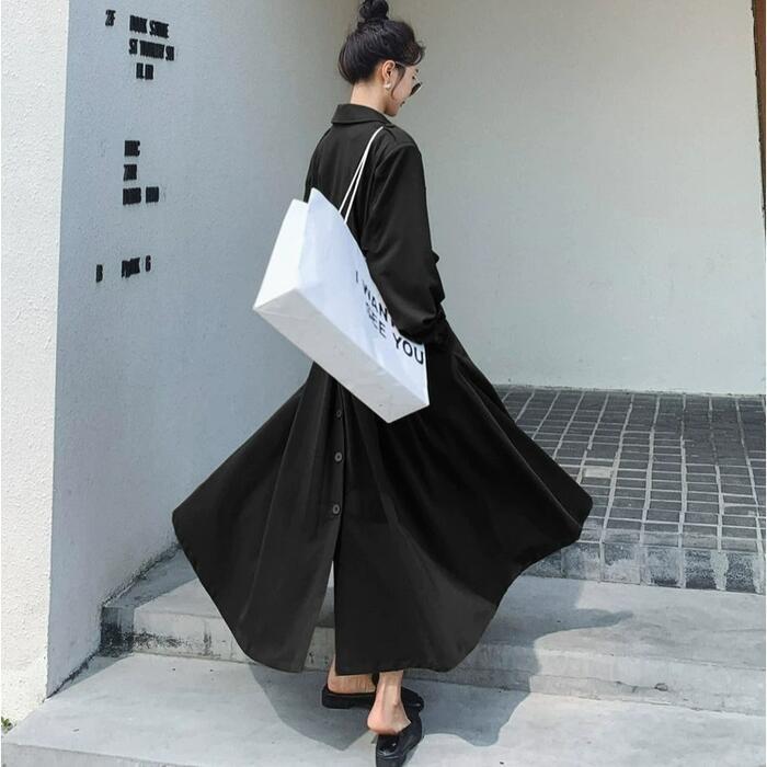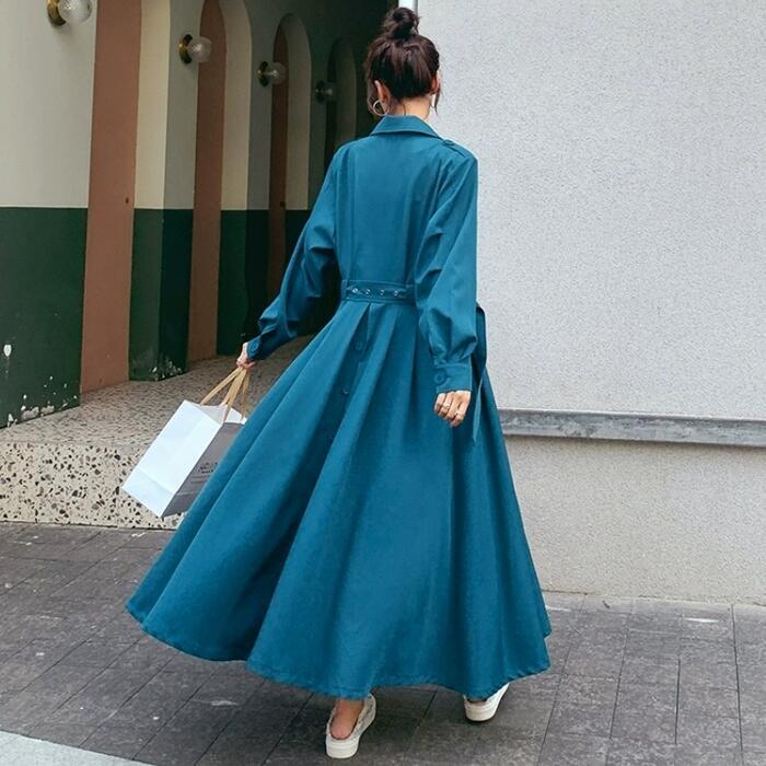 全4色 大きいサイズ 体型カバー ワンピース ドレス シャツワンピ 袖あり アウター 羽織り レディース エレガント きれいめ カジュアル ロング丈 長袖 大人 可愛い フェミニン シンプル ハイウエスト ウエストベルト 韓国 ブルー 青 ブラウン ベージュ ブラック 春 秋 冬 20代 30代 40代 50代