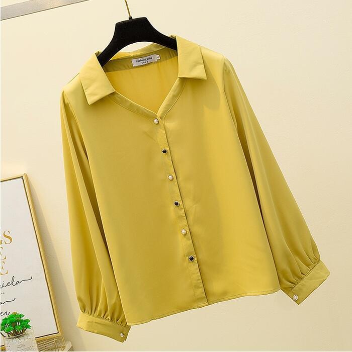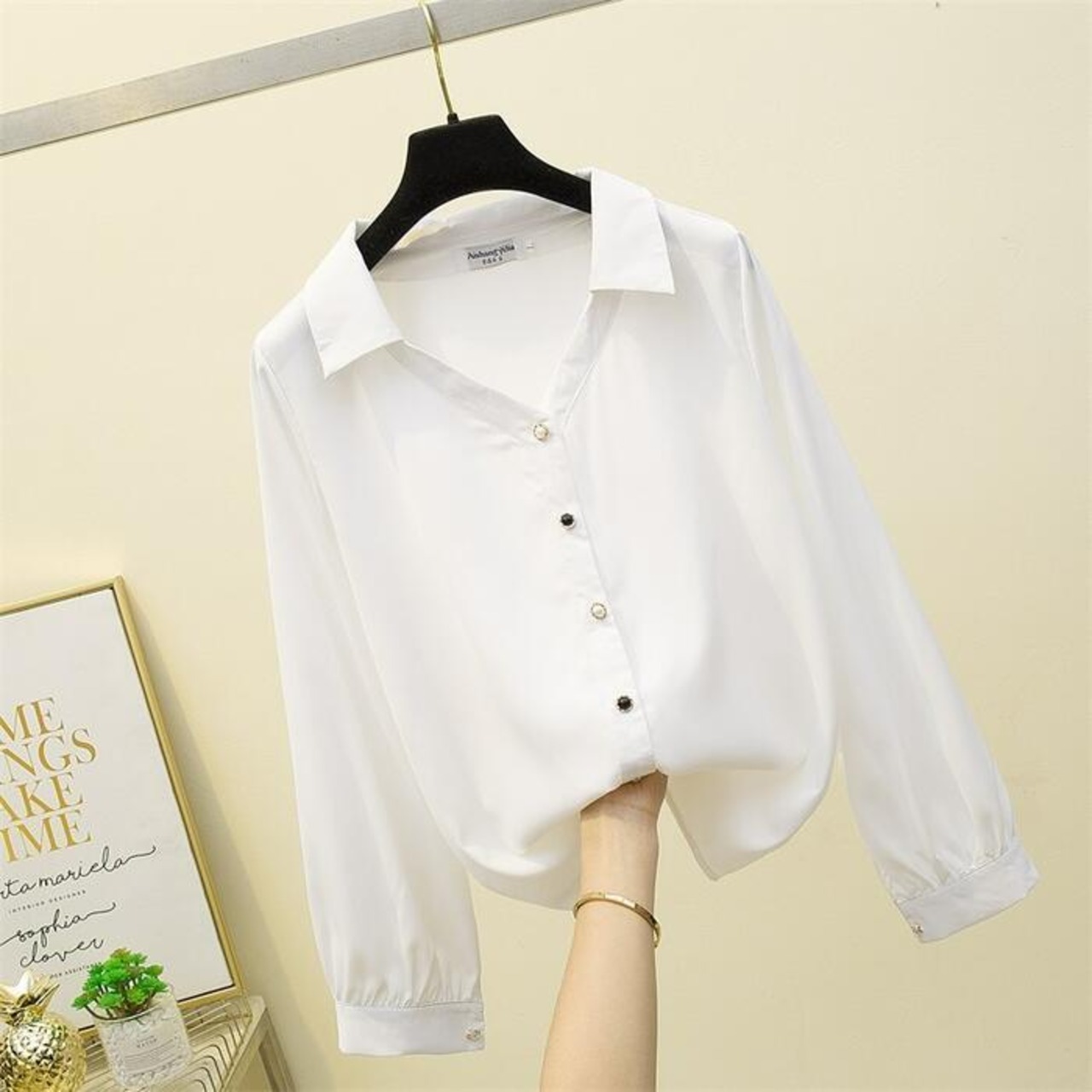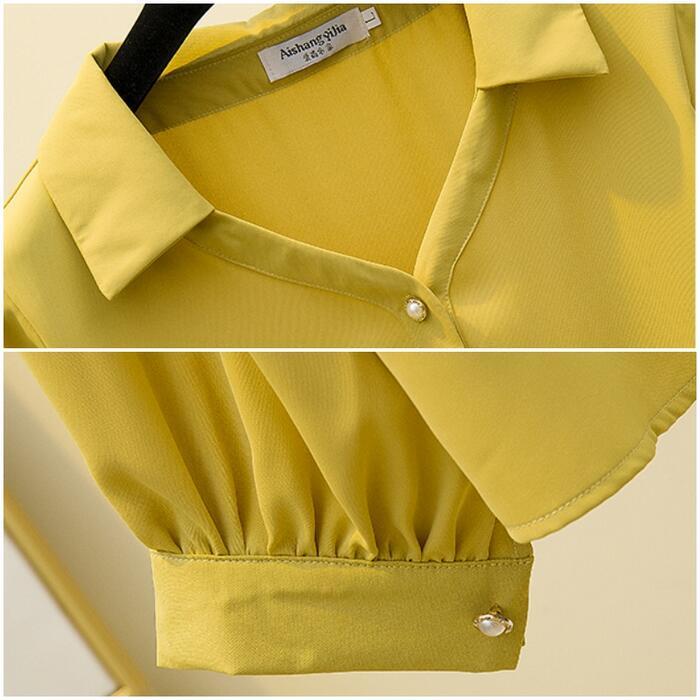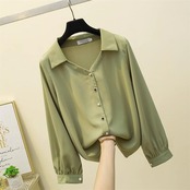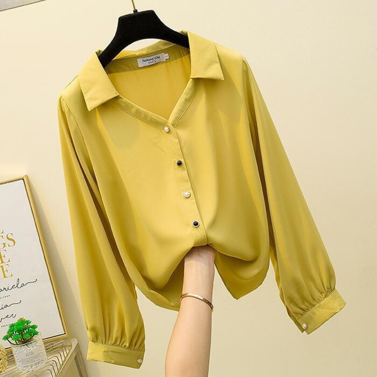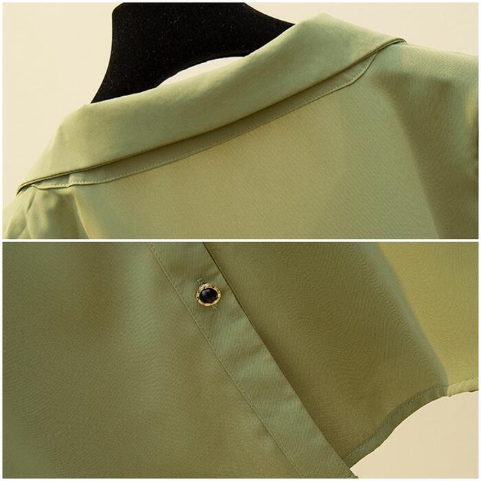 柔らかなとろみ素材が女性らしさを引き出すシフォンシャツ。