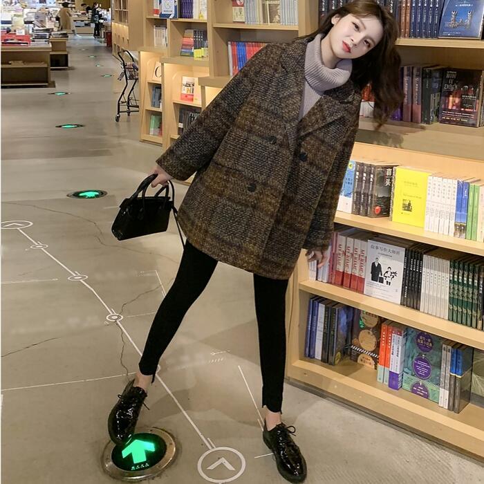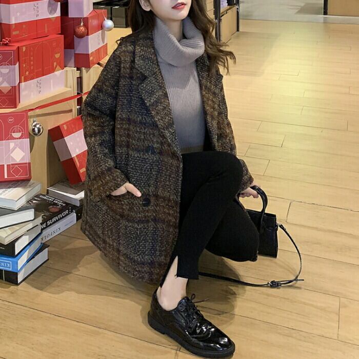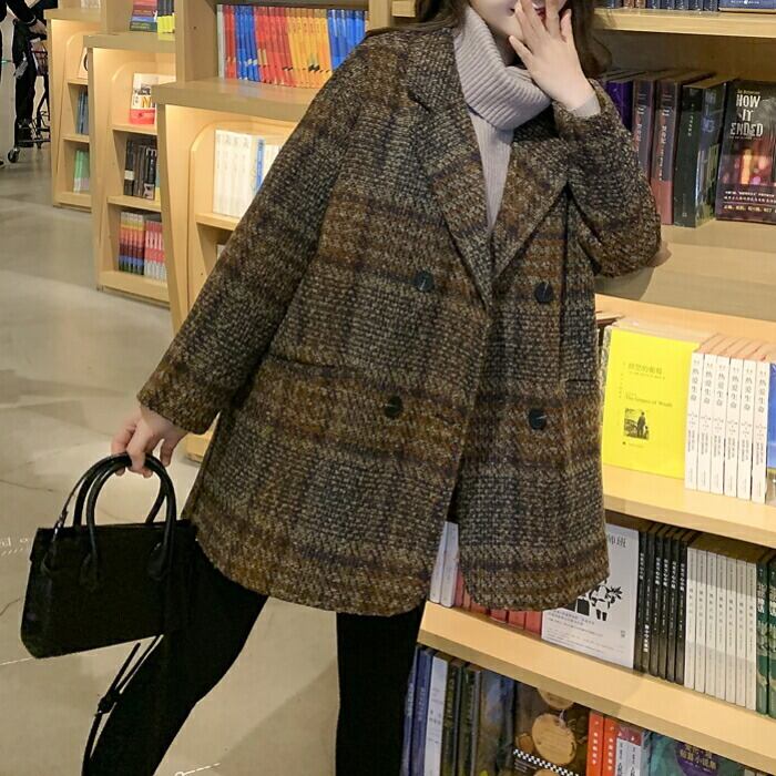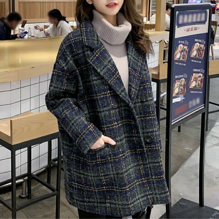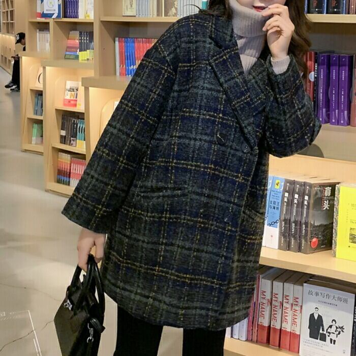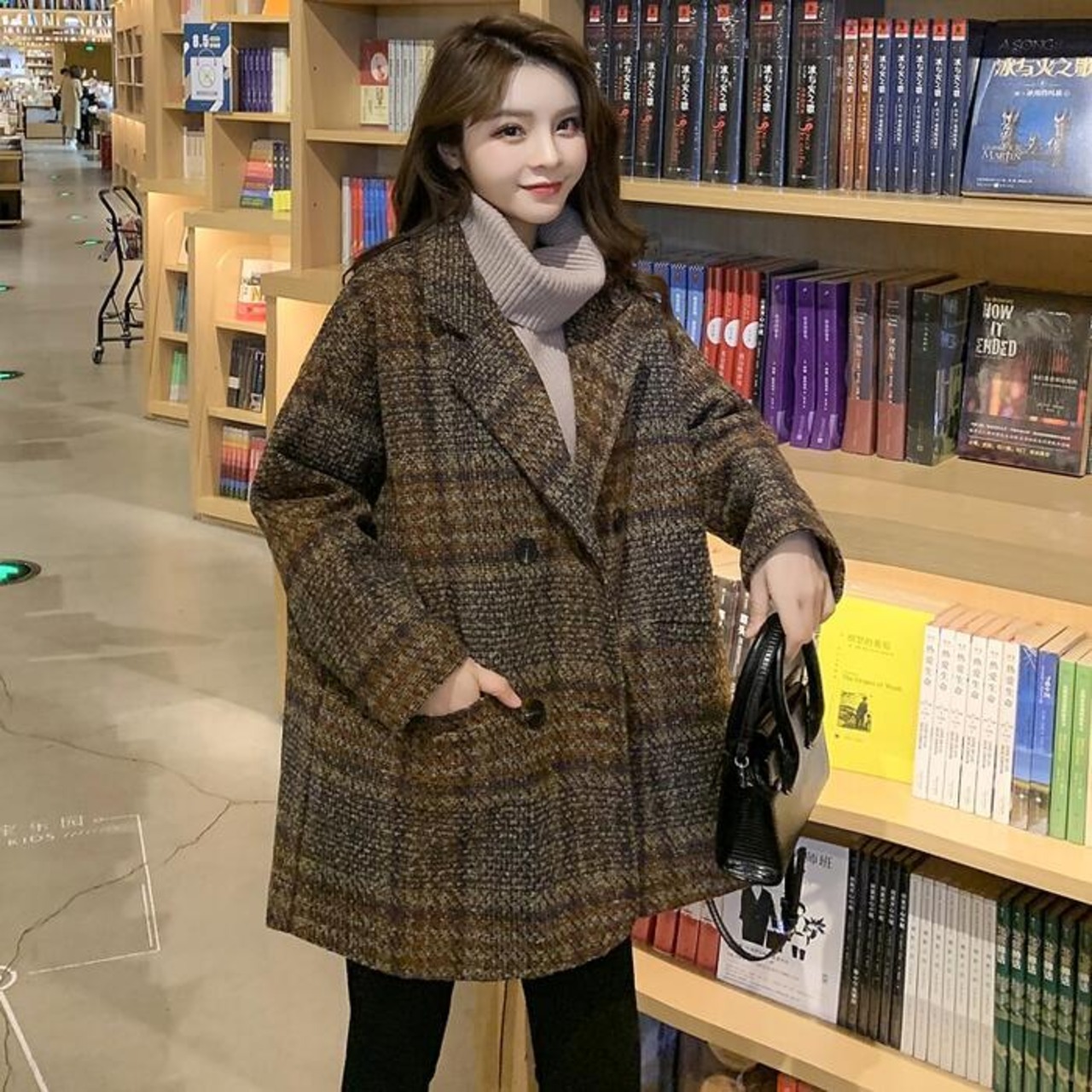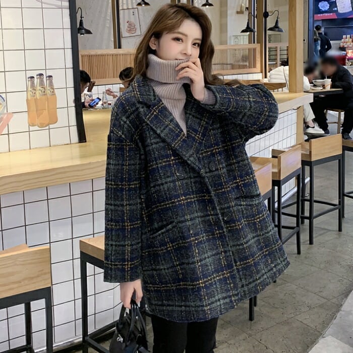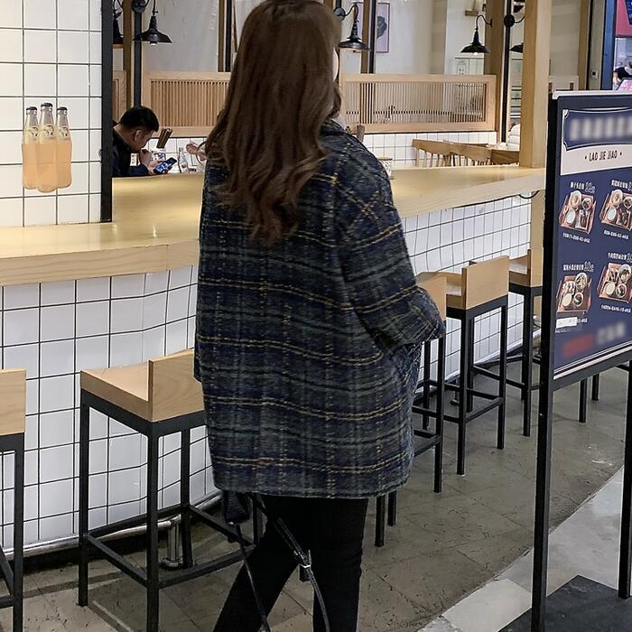 全2色 大きいサイズ 体型カバー アウター コート チェスターコート ジャケット チェック レディース エレガント きれいめ カジュアル 長袖 大人 可愛い フェミニン ミディ丈 ショートコート おしゃれ ゆったり トラッド 韓国 グリーン 緑 ブラウン 春 秋 冬 20代 30代 40代 50代
