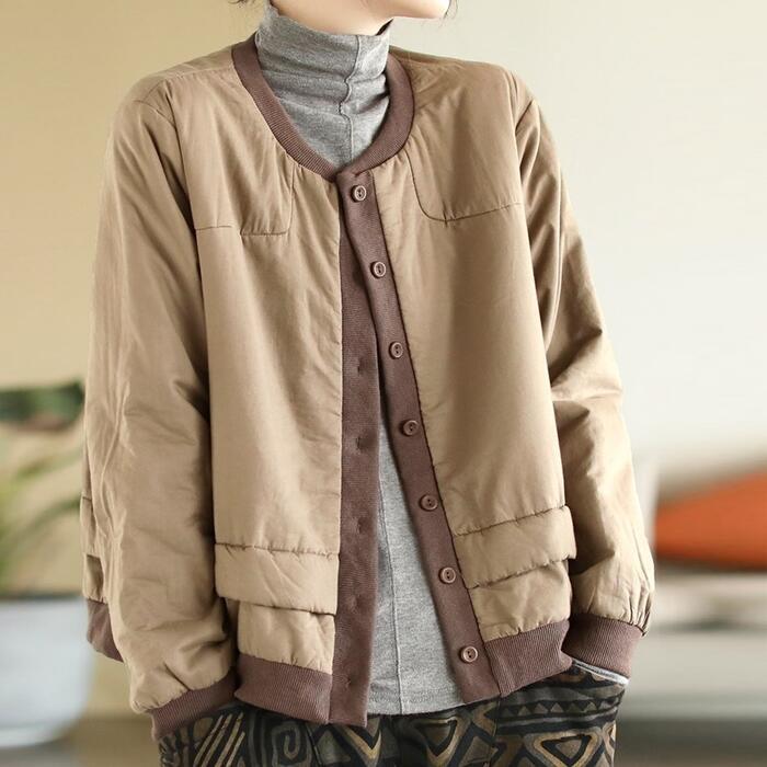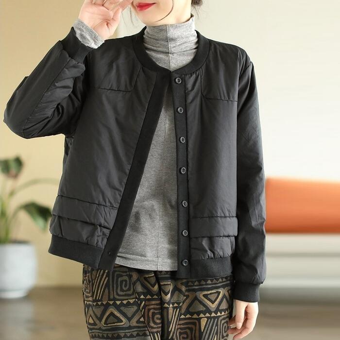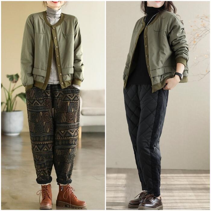 着膨れせずにすっきり着られる中綿入りジャケット。