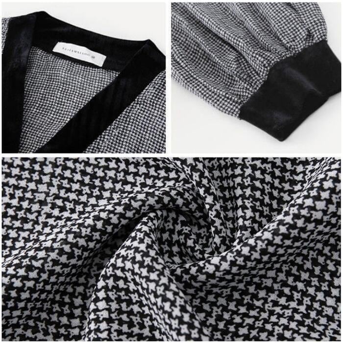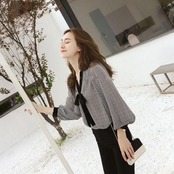 上品な透け感とふんわりとした袖がフェミニンな千鳥格子ブラウス。