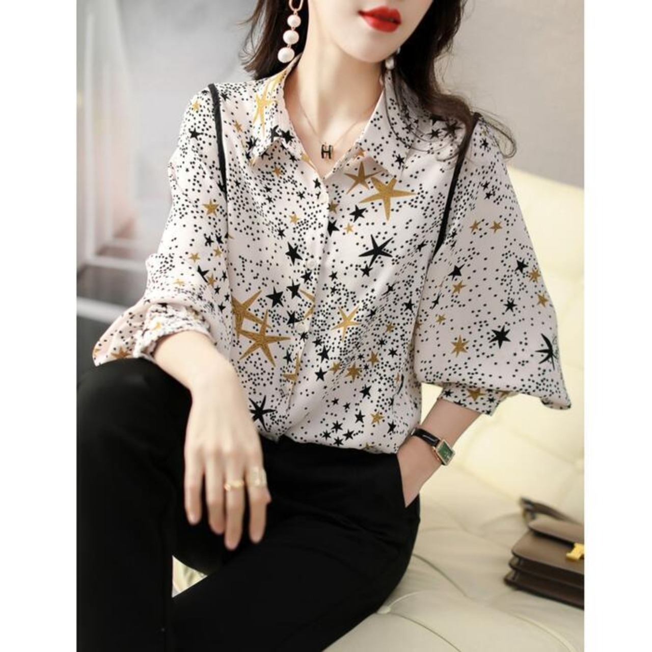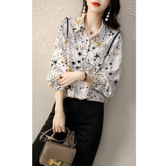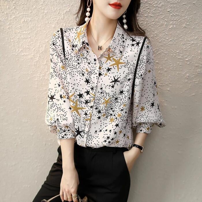 大小様々な星柄がプリントされたシフォンシャツ。