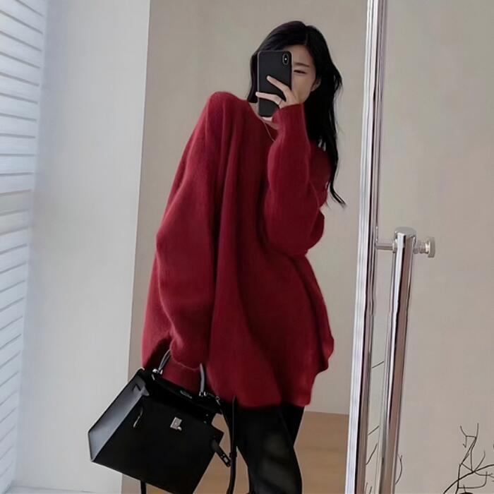 全5色 大きいサイズ 体型カバー シンプル トップス ニット セーター プルオーバー レディース エレガント きれいめ カジュアル 長袖 大人 可愛い フェミニン おしゃれ ゆったり オーバーサイズ クルーネック ピンク ホワイト 白 ブラウンレッド 赤 ブラック 黒 春 秋 冬 20代 30代 40代 50代