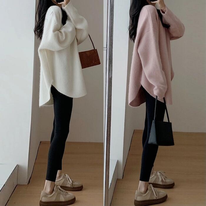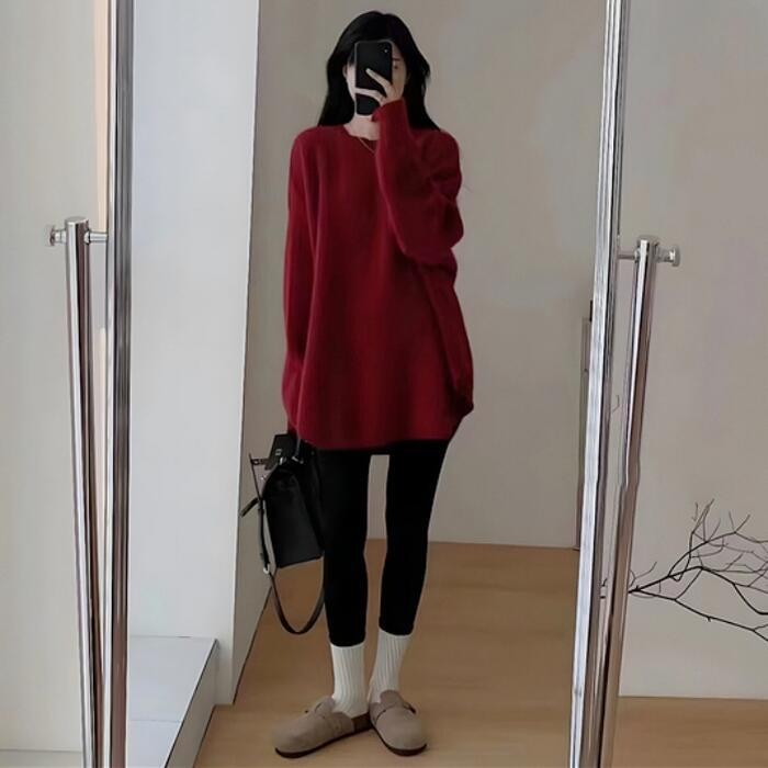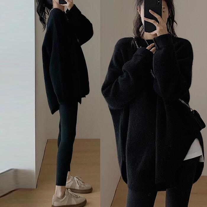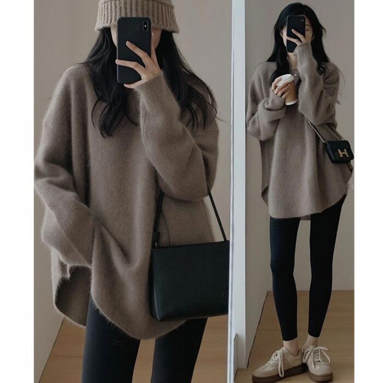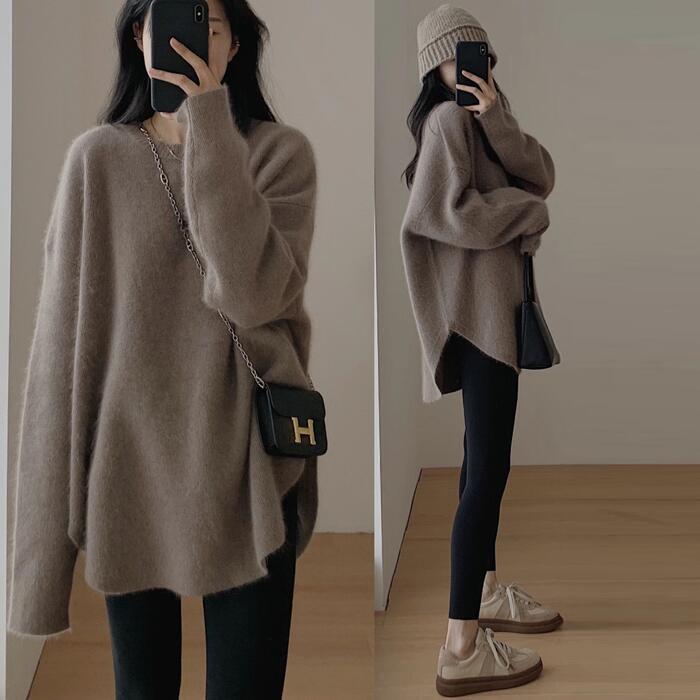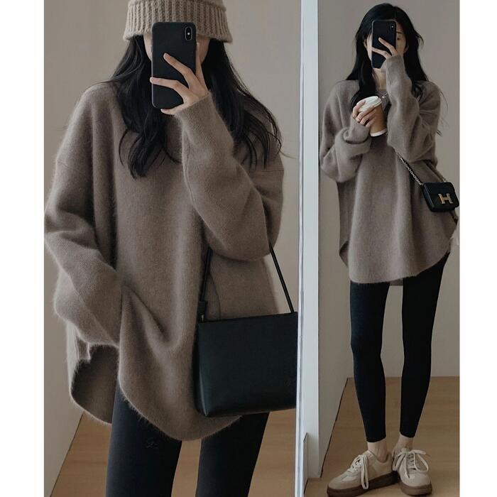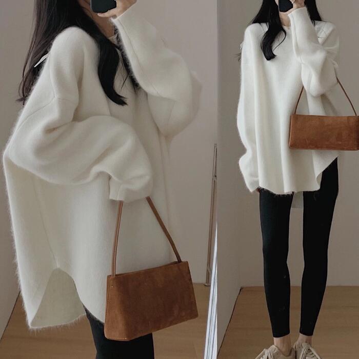 ゆるっと着られるオーバーサイズのクルーネックニット。