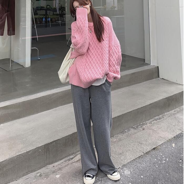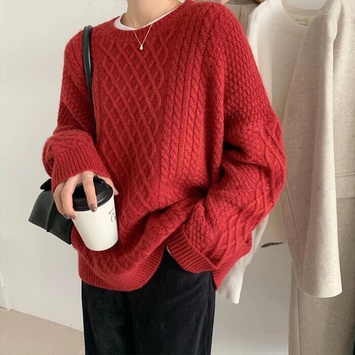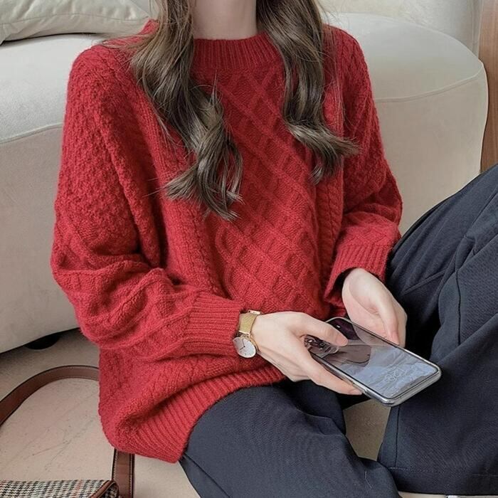 全5色 大きいサイズ 体型カバー シンプル トップス ニット セーター プルオーバー レディース エレガント きれいめ カジュアル 長袖 大人 可愛い フェミニン おしゃれ ゆったり クルーネック ピンク ホワイト 白 青 ブルー レッド 赤 グリーン 緑 春 秋 冬 20代 30代 40代 50代