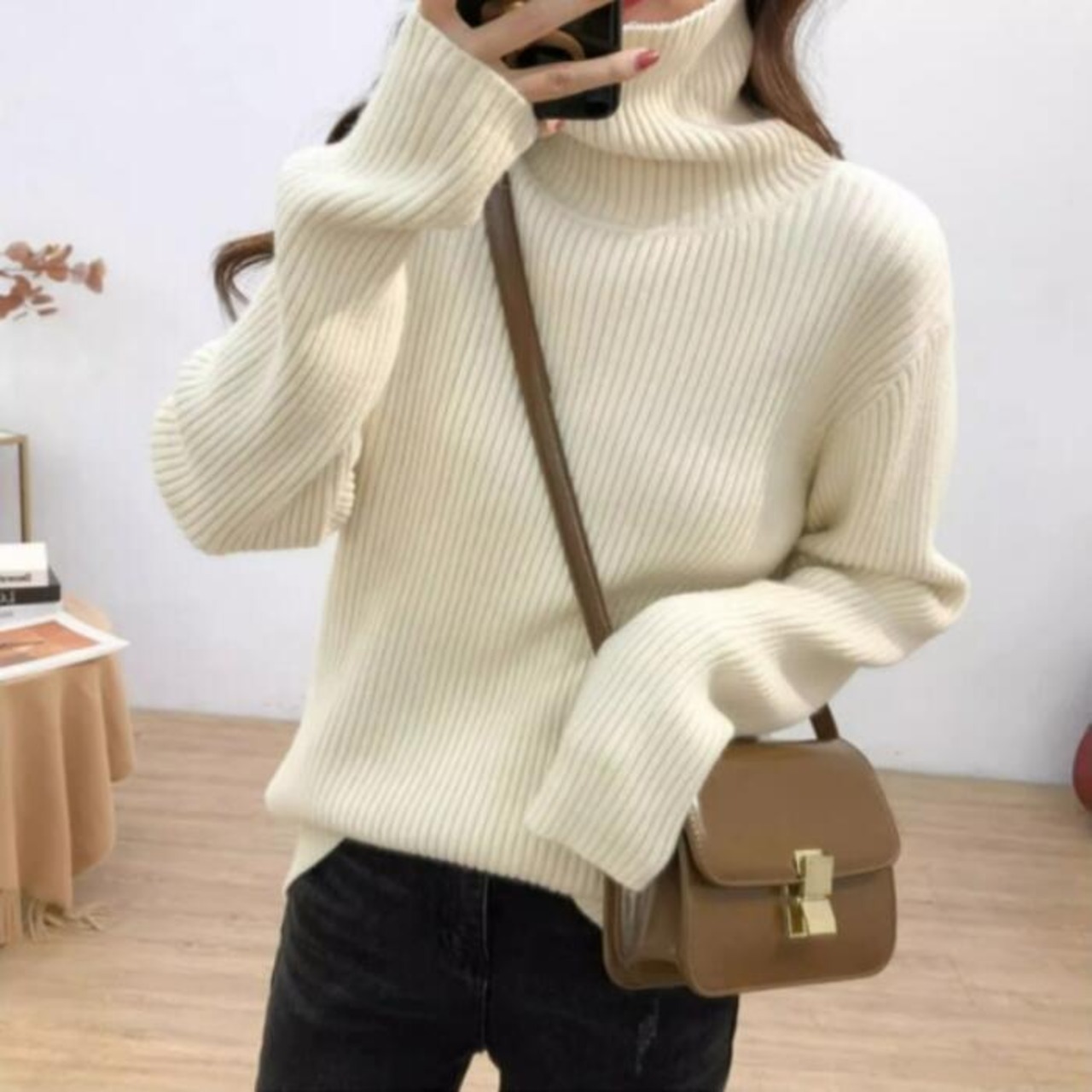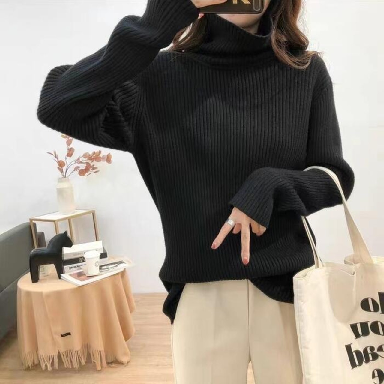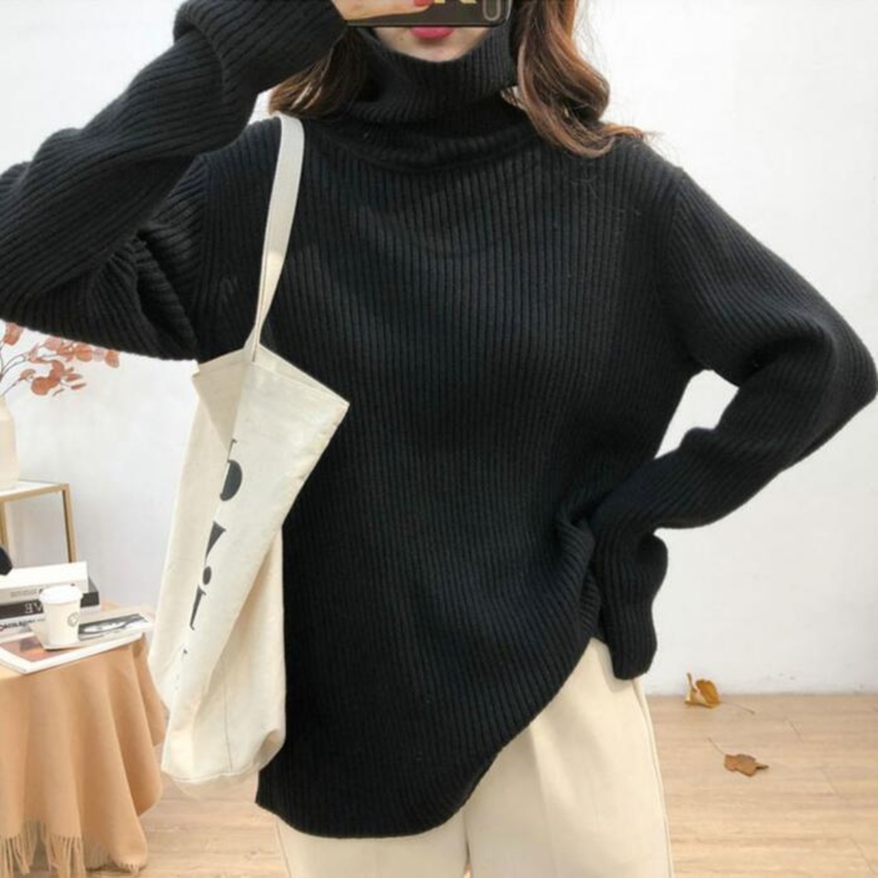 シンプル&ベーシックなタートルネックニット。