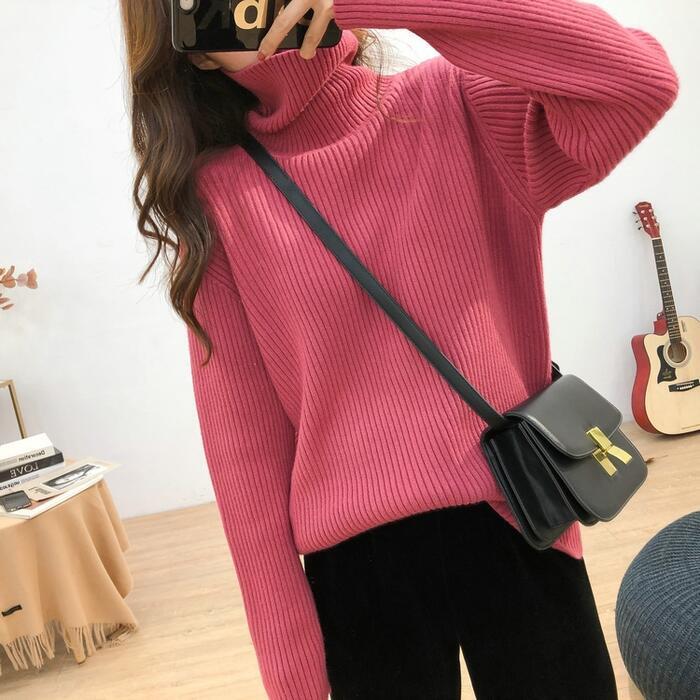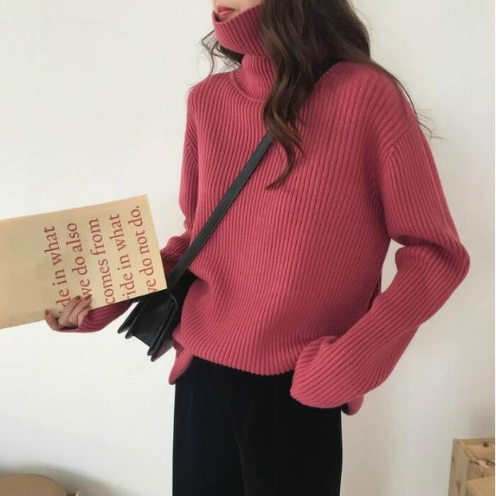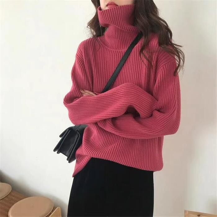 全3色 大きいサイズ 体型カバー トップス ニット セーター タートルネック カットソー レディース エレガント きれいめ カジュアル 長袖 大人 可愛い フェミニン おしゃれ ゆったり プルオーバー シンプル 韓国 ピンク ホワイト 白 ブラック 黒 春 秋 冬 20代 30代 40代 50代