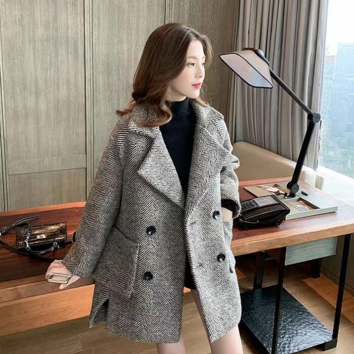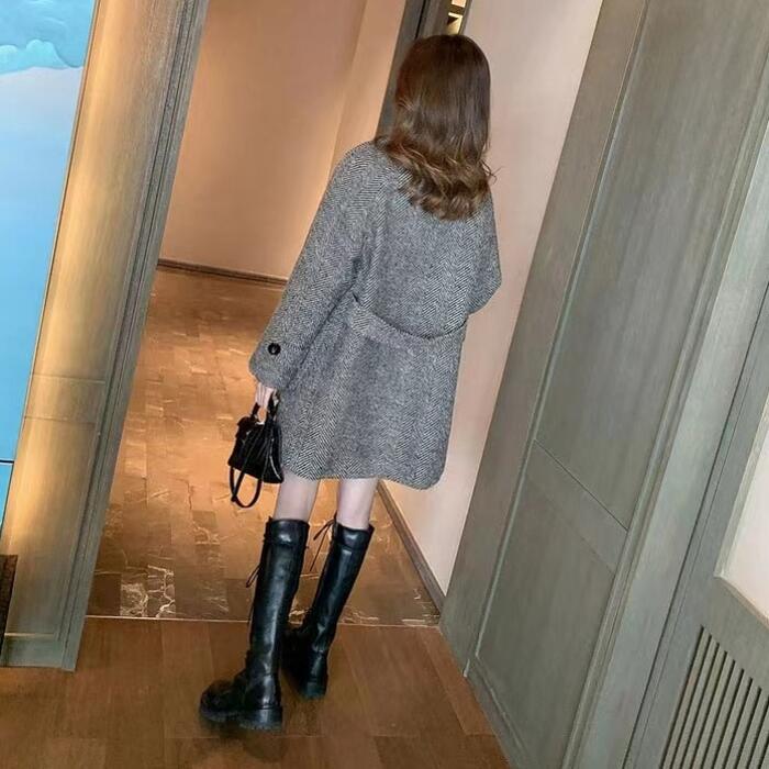 クラシックなヘリンボーンが目を惹くミディコート。