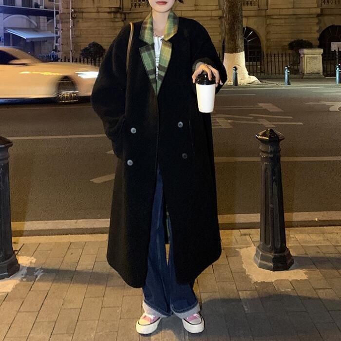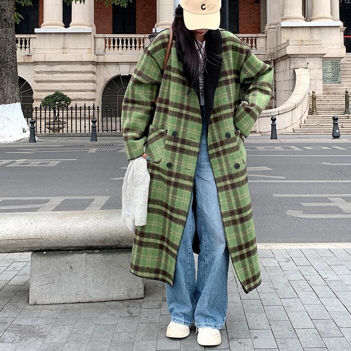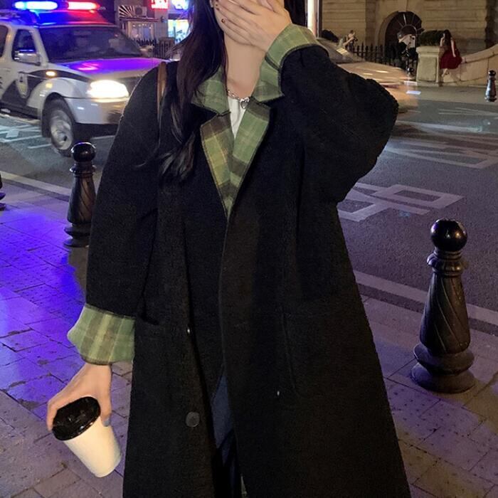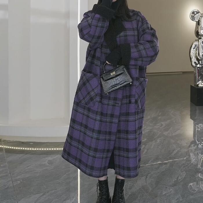 全4色 体型カバー オーバーサイズ ゆったり リバーシブル アウター コート ジャケット チェスターコート チェック テーラード レディース きれいめ カジュアル 長袖 大人 可愛い フェミニン クラシカル おしゃれ 韓国 ブラック 黒 パープル ブラウン グリーン 緑 春 秋 冬 20代 30代 40代 50代