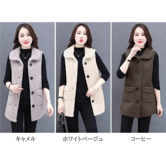 全3色 大きいサイズ 体型カバー トップス ボア ベスト ジャケット 羽織り カーディガン レディース エレガント きれいめ カジュアル ノースリーブ 大人 可愛い フェミニン おしゃれ ゆったり シンプル ベージュ ホワイト 白 ブラウン 春 秋 冬 20代 30代 40代 50代