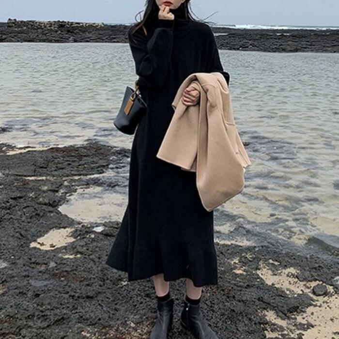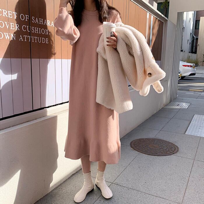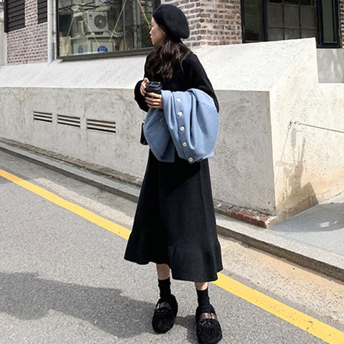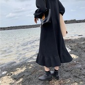 さりげない裾フレアシルエットが可愛いニットワンピース。