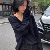 顔周りがすっきり見えるVネックデザイン。