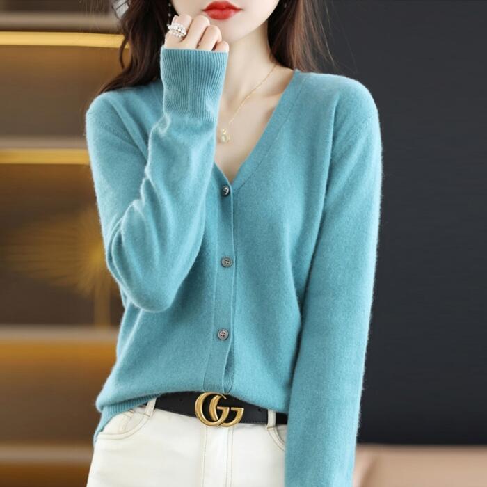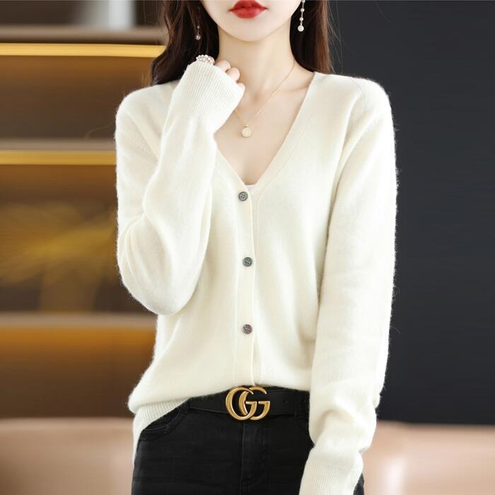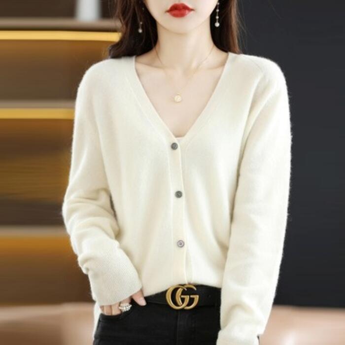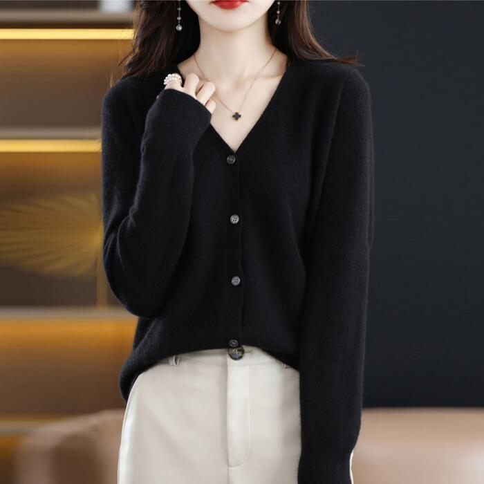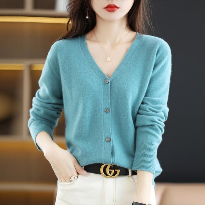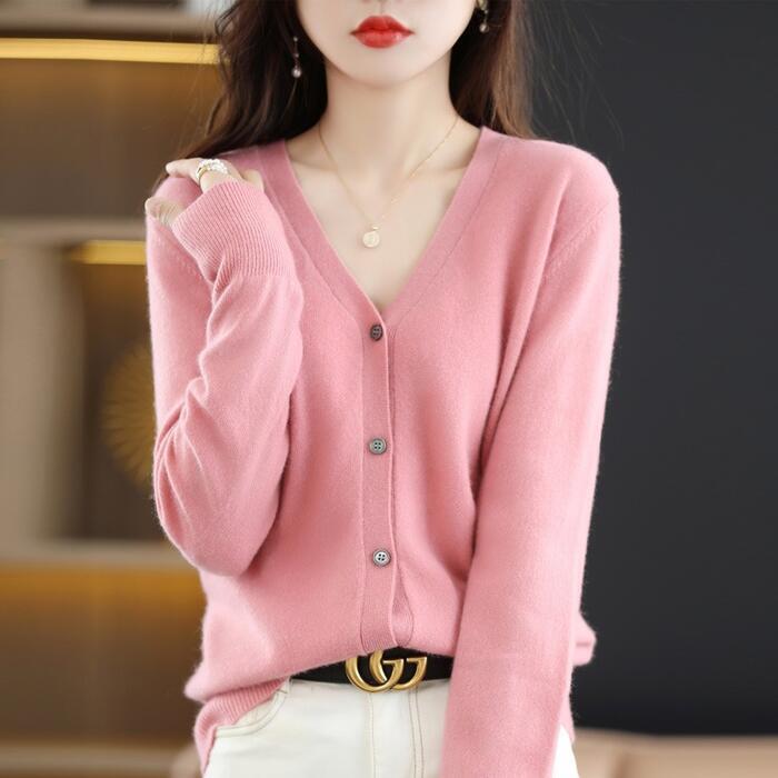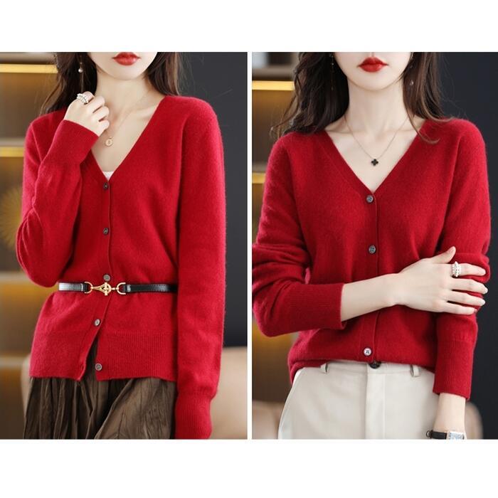豊富なカラーバリエーションから選べるVネックニットカーディガン。