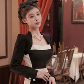 すっきりとしたタイトシルエットのエレガントなワンピース。
