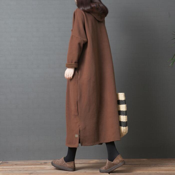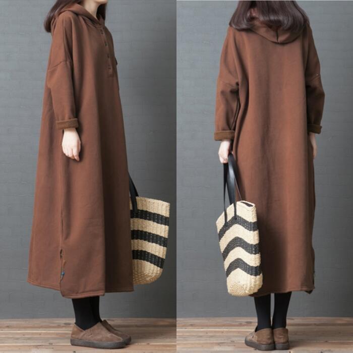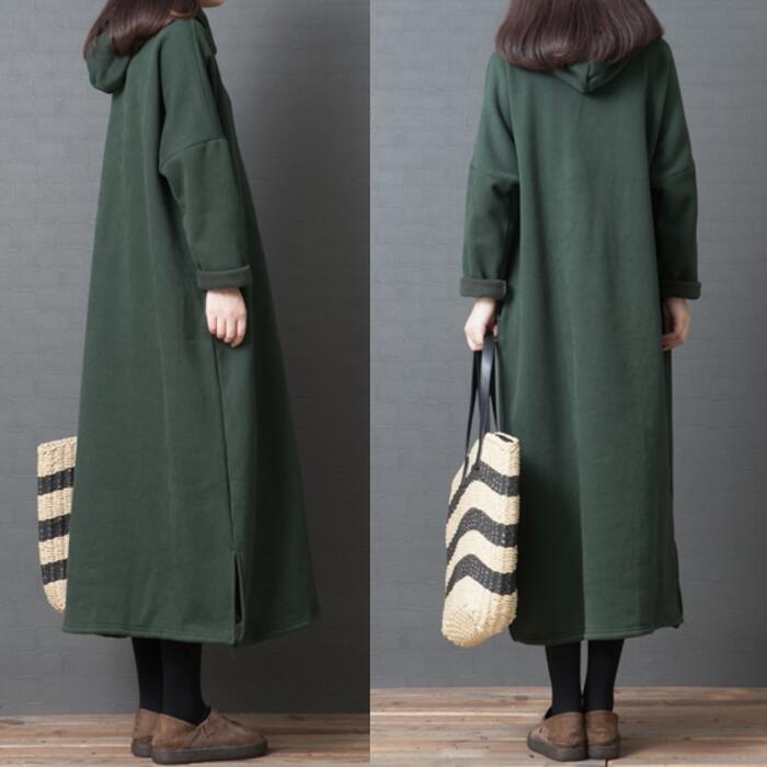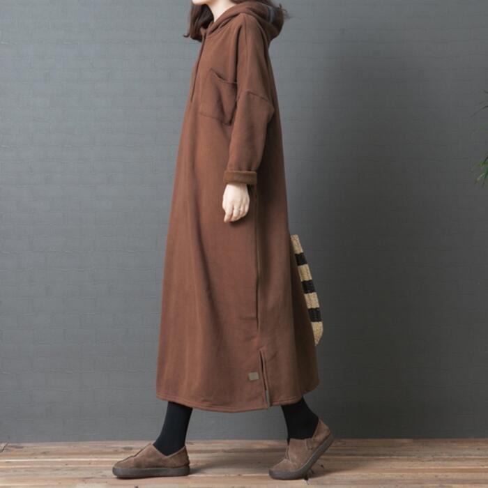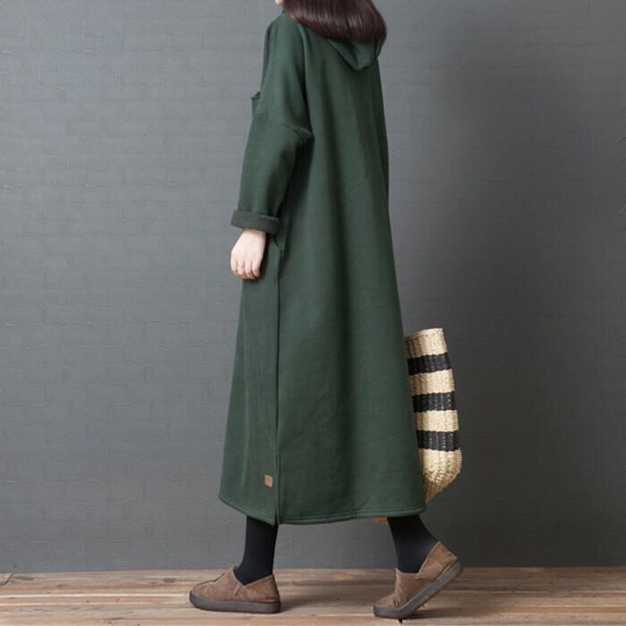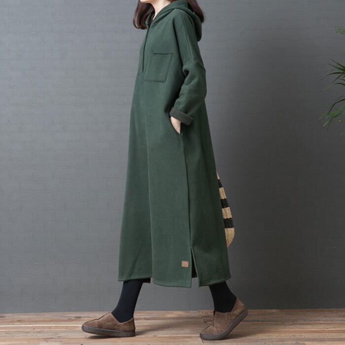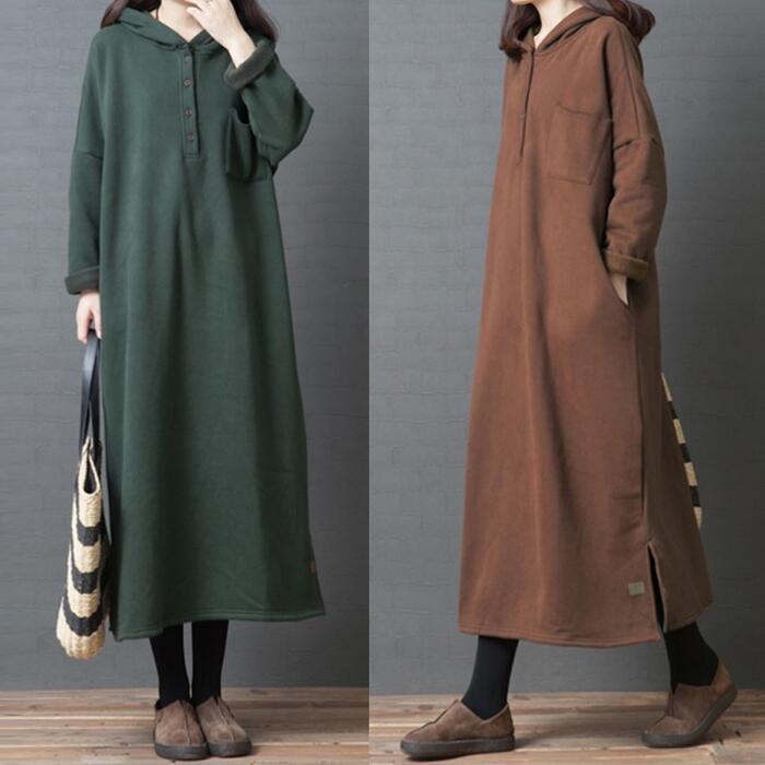 全2色 大きいサイズ 体型カバー 裏起毛 ワンピース スウェット ドレス フード パーカー ワンピ 袖あり レディース きれいめ カジュアル ロング丈 長袖 大人 可愛い フェミニン ゆったり 楽ちん シンプル プルオーバー グリーン 緑 ブラウン 春 秋 冬 20代 30代 40代 50代
