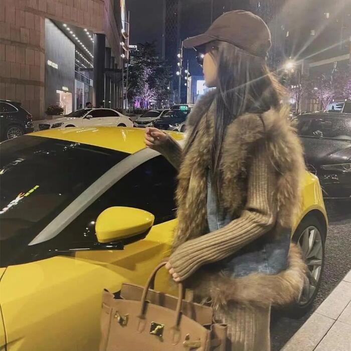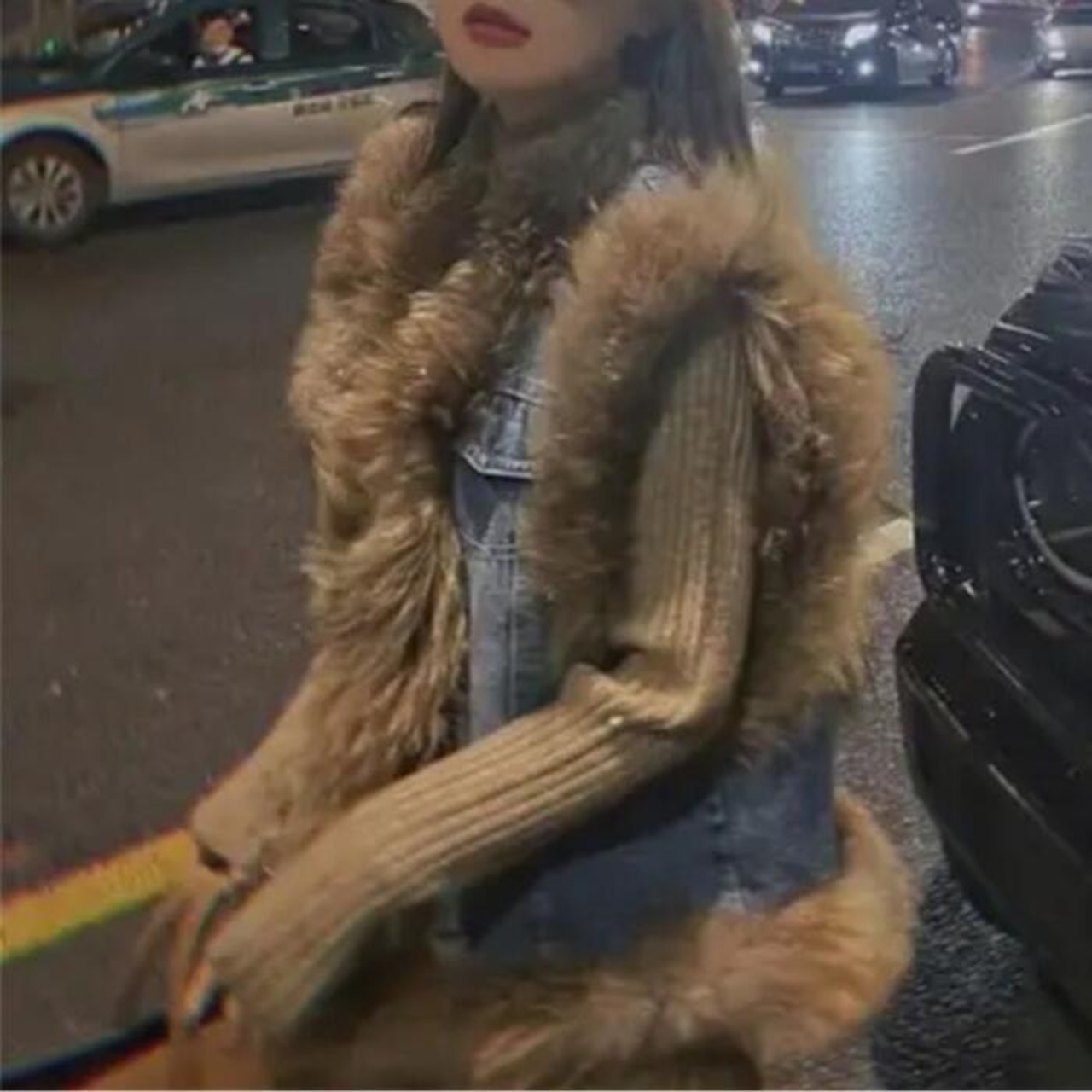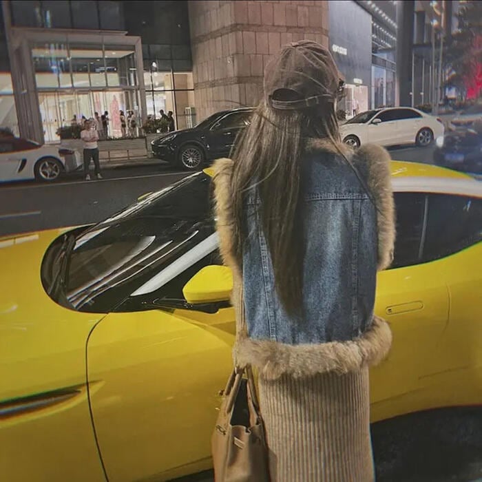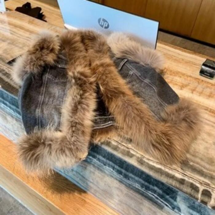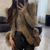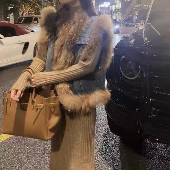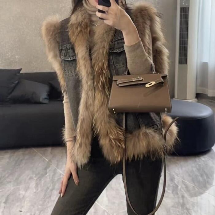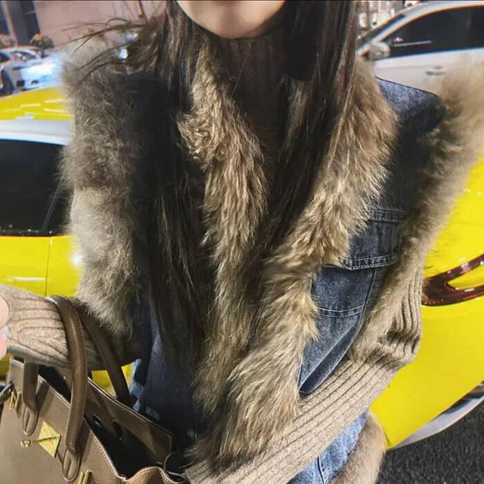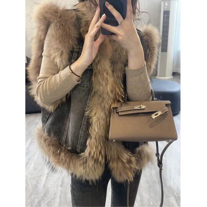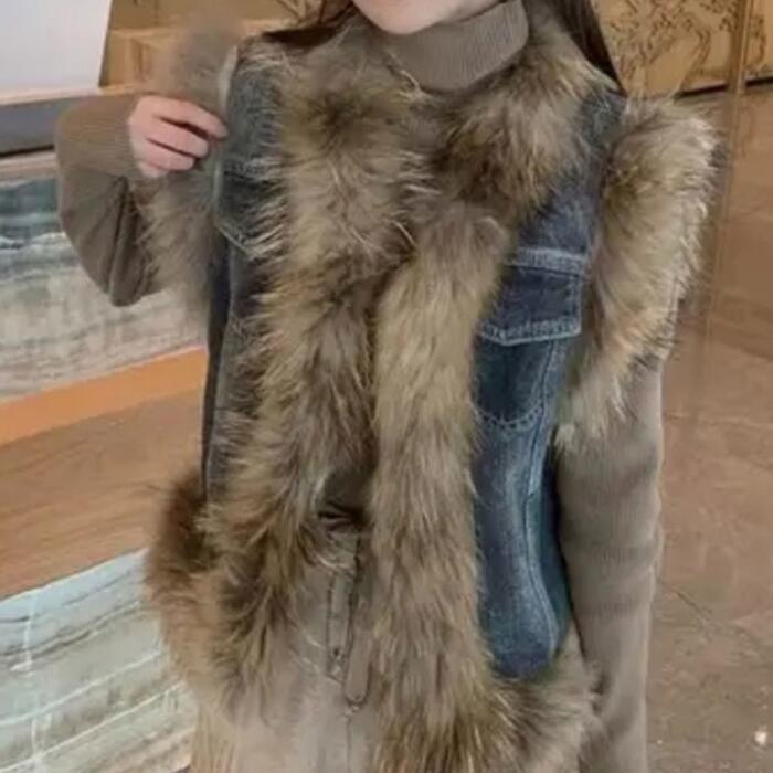 デニムベストにファーをプラスした高見えアイテム。