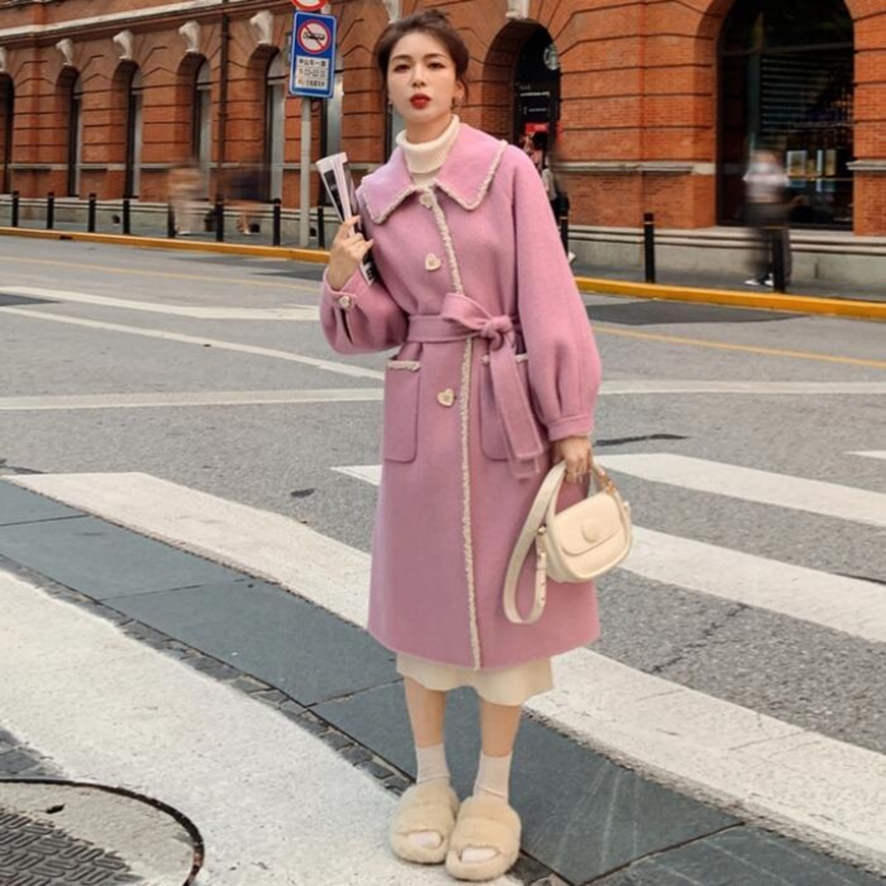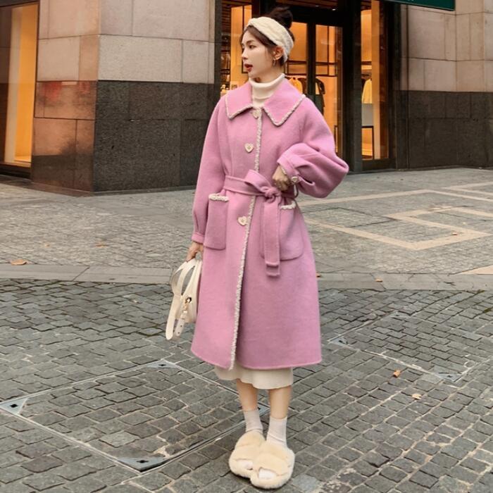 全2種 大きいサイズ ゆったり アウター コート ジャケット ステンカラー チェスター ハート 中綿 レディース きれいめ カジュアル 長袖 大人 可愛い フェミニン おしゃれ ガーリー スイート ウエストベルト 体型カバー 韓国 ピンク 春 秋 冬 20代 30代 40代 50代