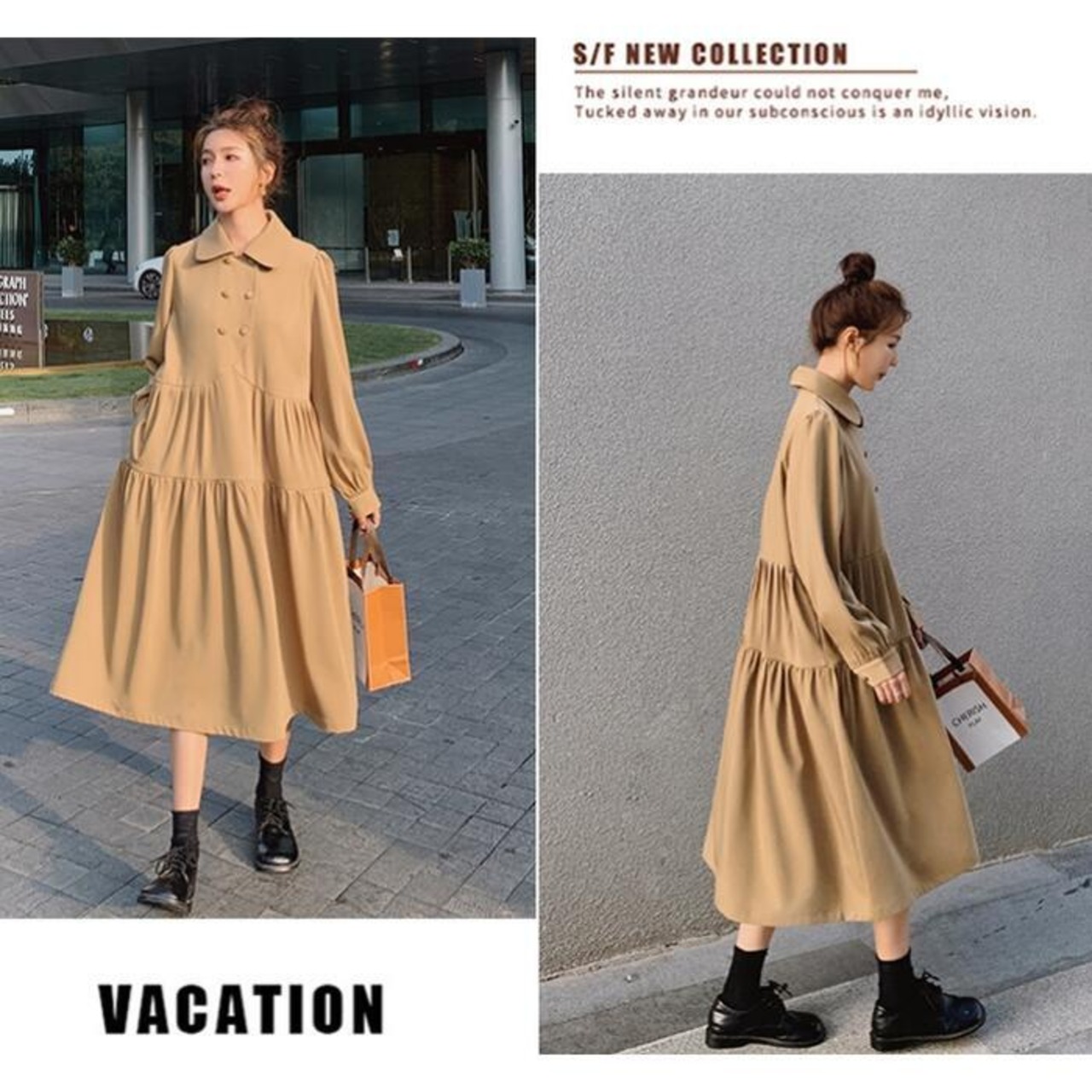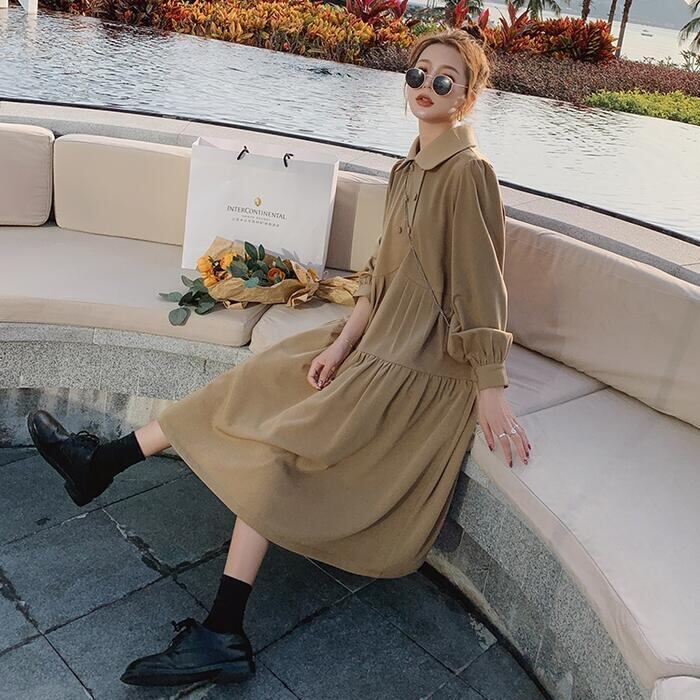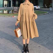 ふわっとしたティアードデザインが襟付きワンピース。