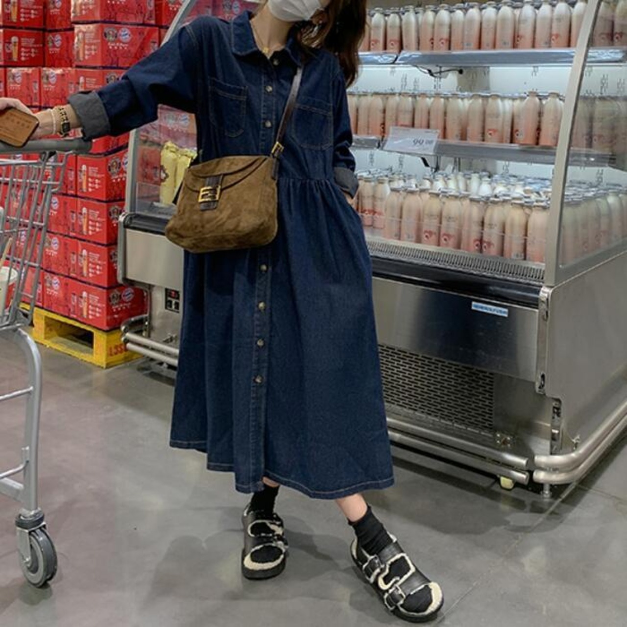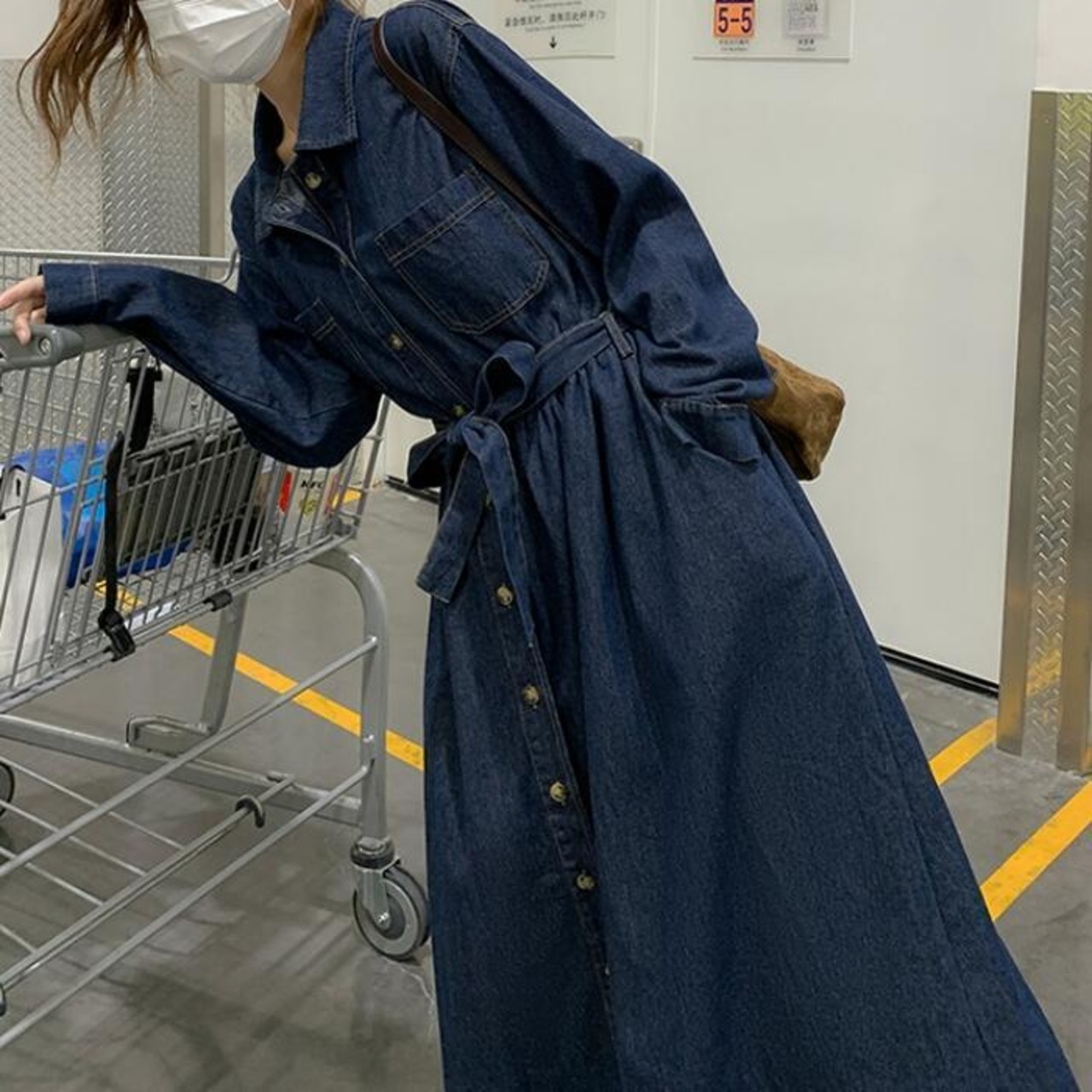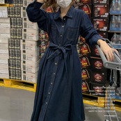 ふんわりシルエットが可愛いデニムシャツワンピース。