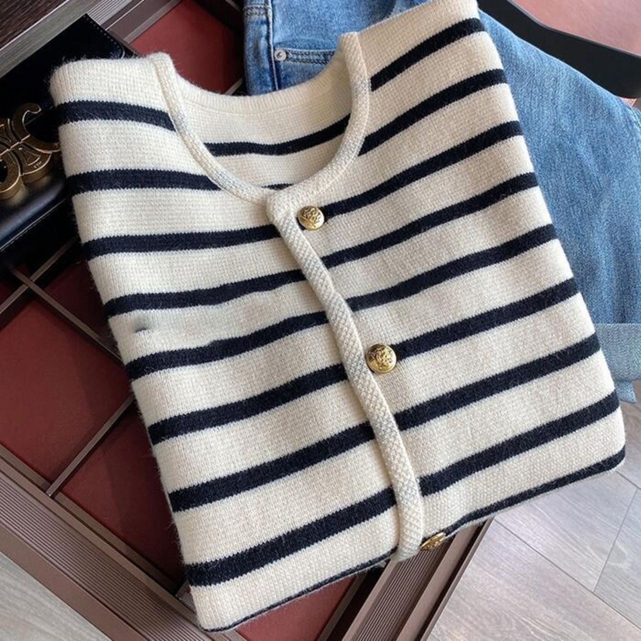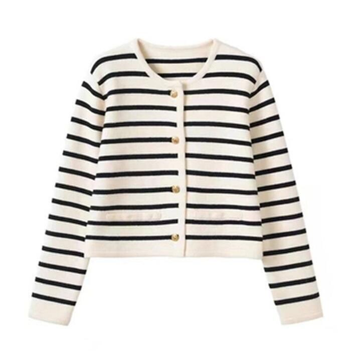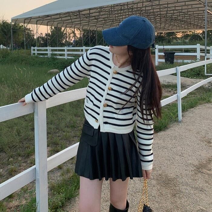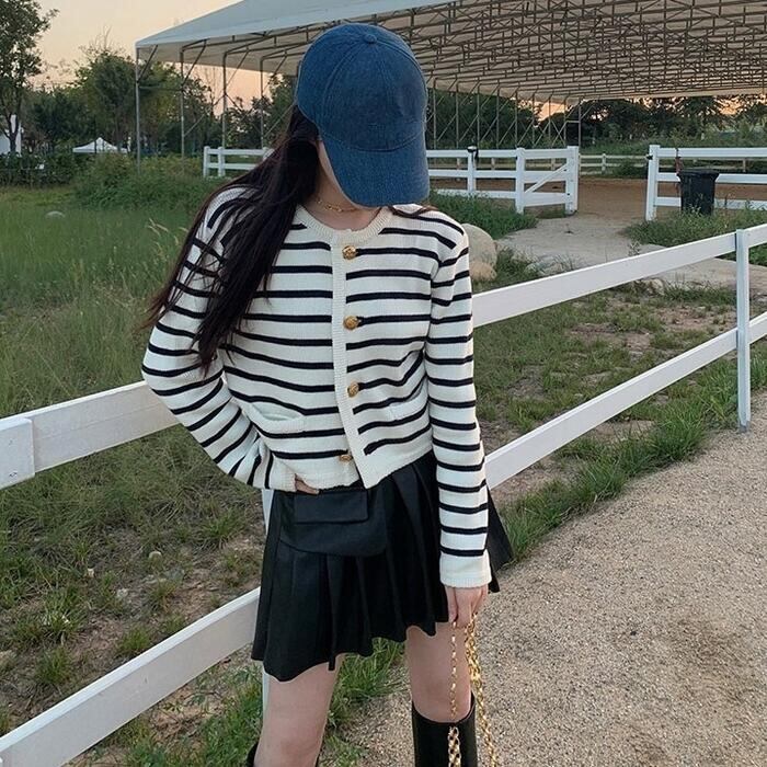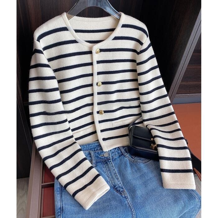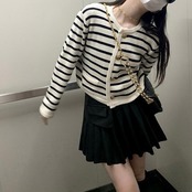 ボーダー×ゴールドボタンがマリンムード漂うカーディガン。