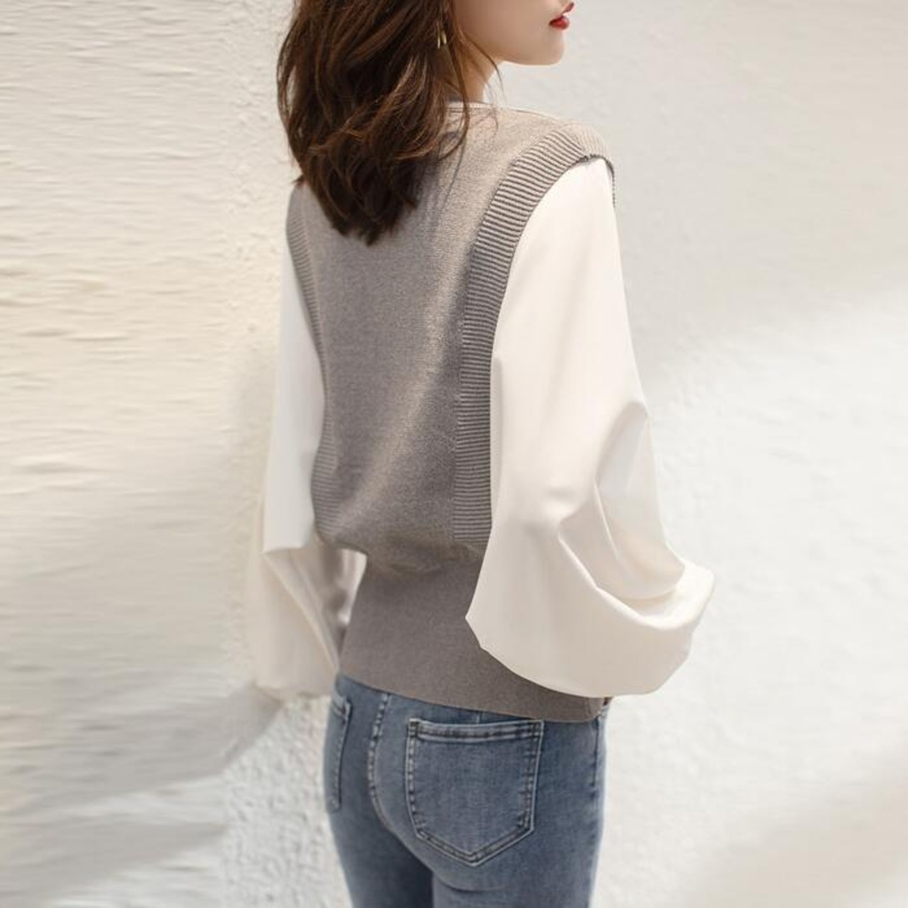 ふんわり袖が可愛いレイヤード風のトップス。