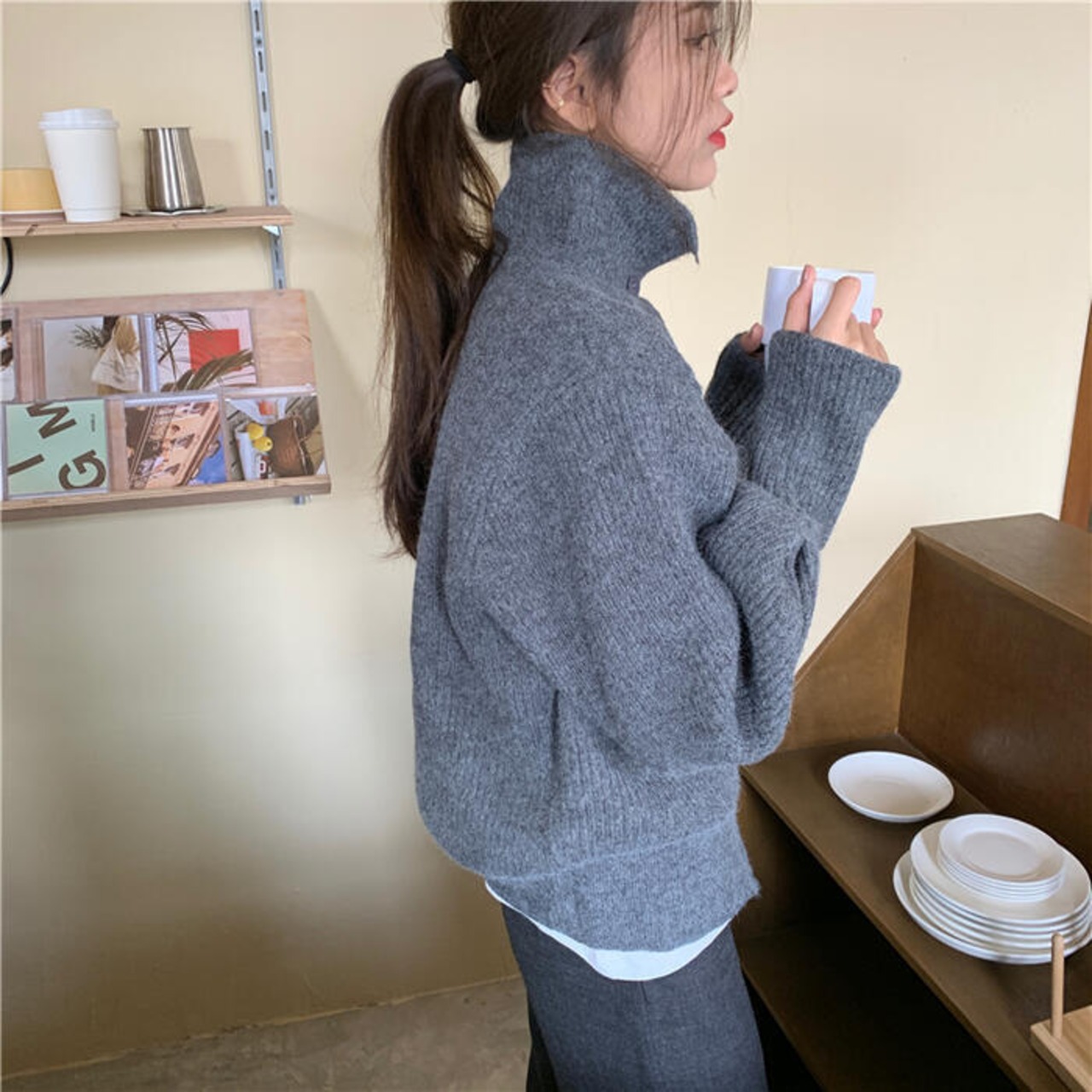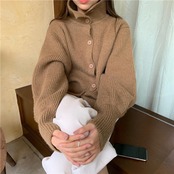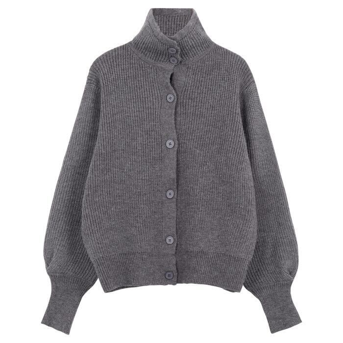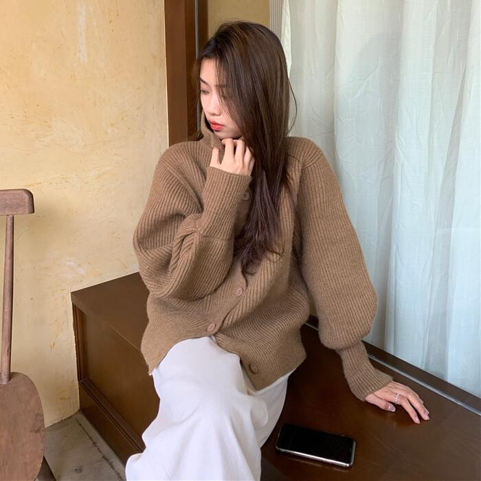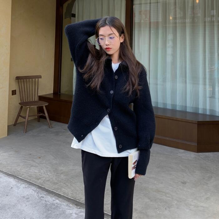 全3色 体型カバー トップス ニット カーディガン セーター 羽織り 襟付き レディース エレガント きれいめ カジュアル 長袖 プルオーバー 大人 可愛い フェミニン おしゃれ ゆったり シンプル 韓国 ブラウン グレー ブラック 黒 春 秋 冬 20代 30代 40代 50代