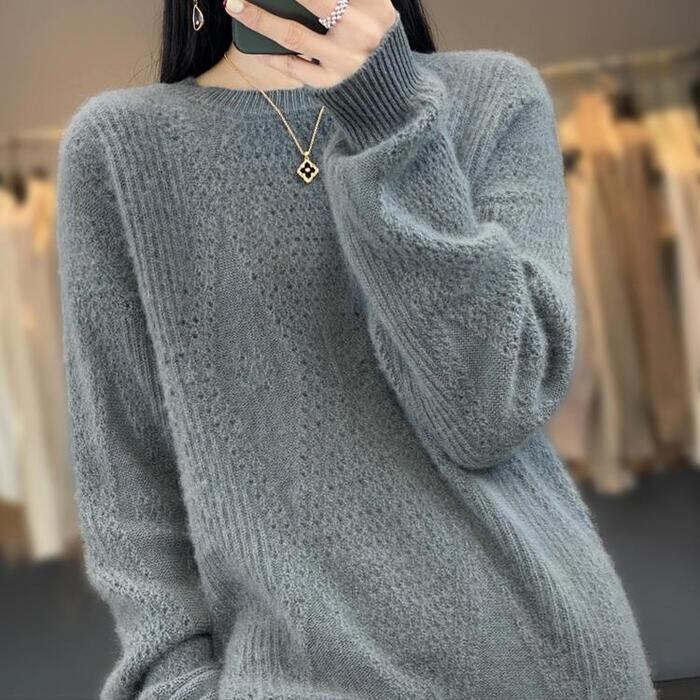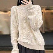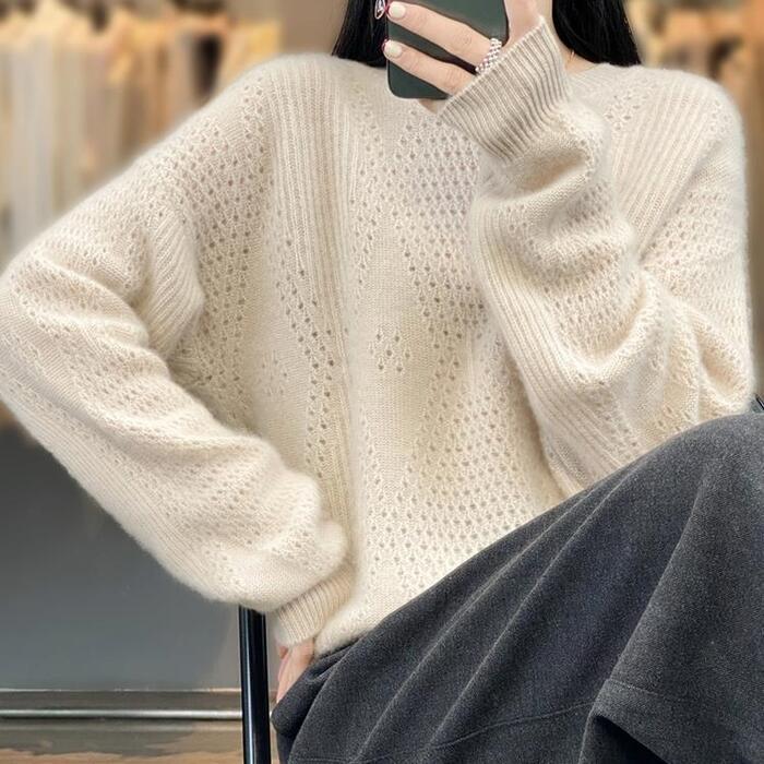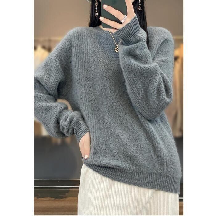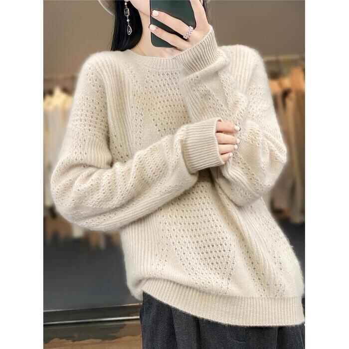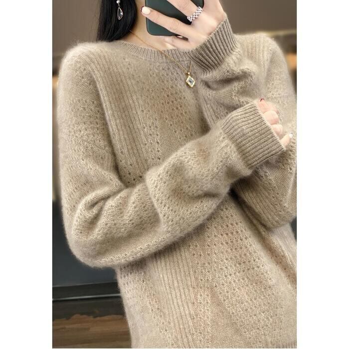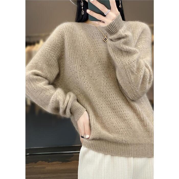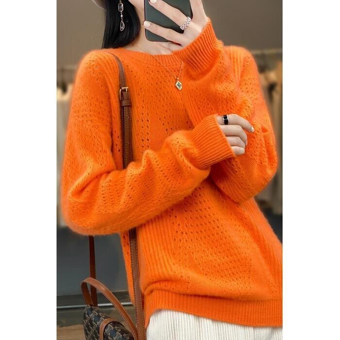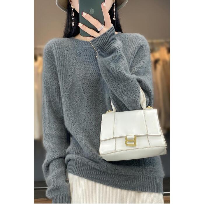 全4色 大きいサイズ 体型カバー ウール トップス ニット 透かし編み セーター レディース きれいめ カジュアル 長袖 大人 可愛い フェミニン おしゃれ クルーネック ゆったり シンプル 暖かい ベーシック オレンジ グレー ベージュ 春 秋 冬 20代 30代 40代 50代