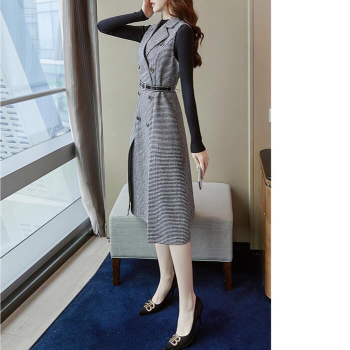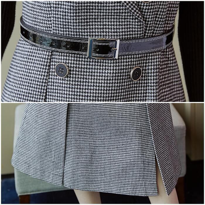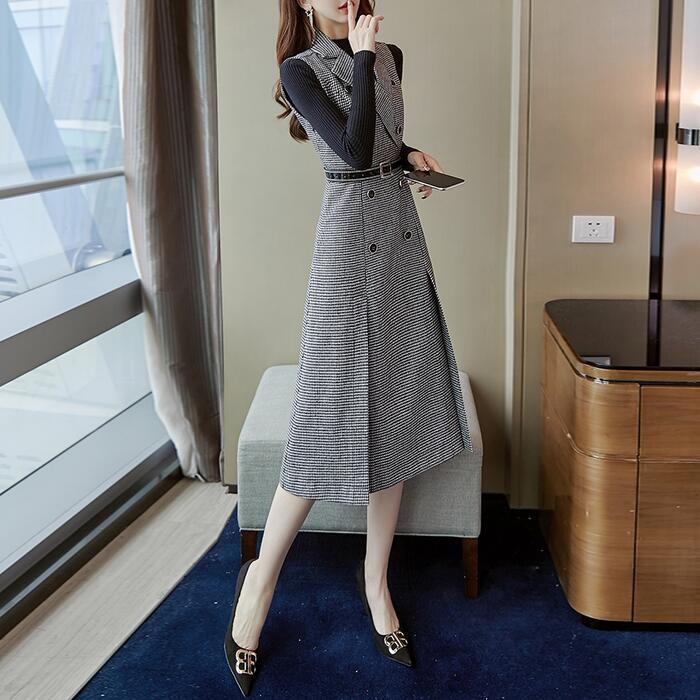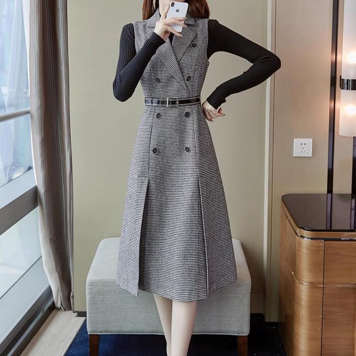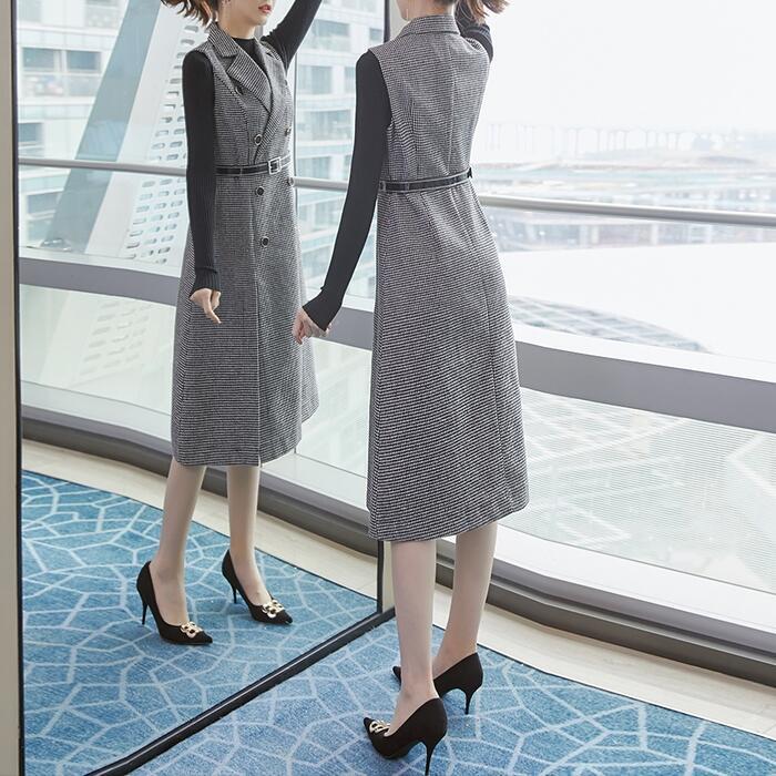 千鳥格子柄ノースリーブワンピース&インナーセット。