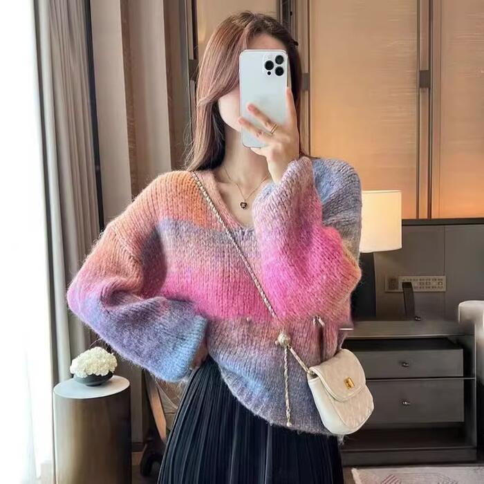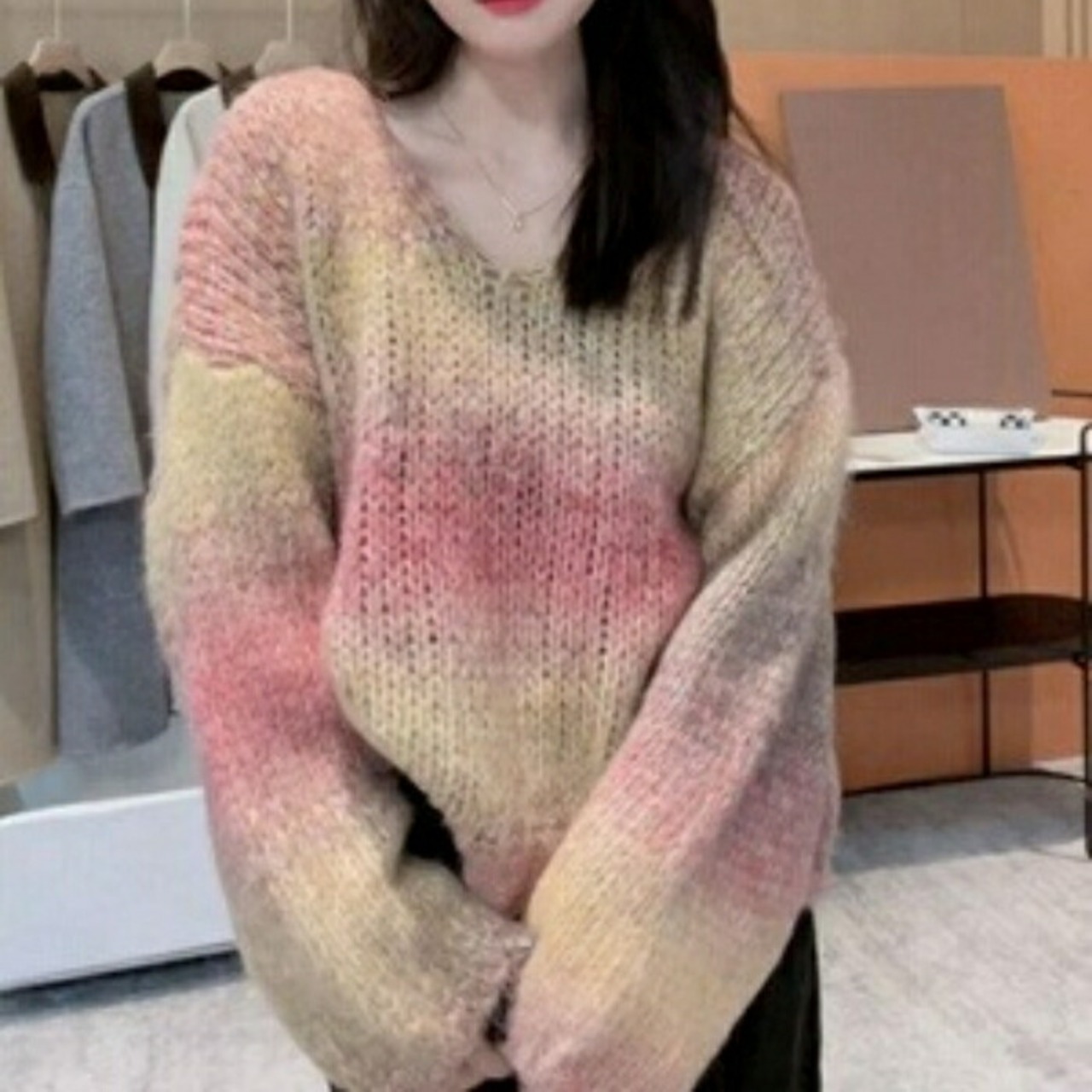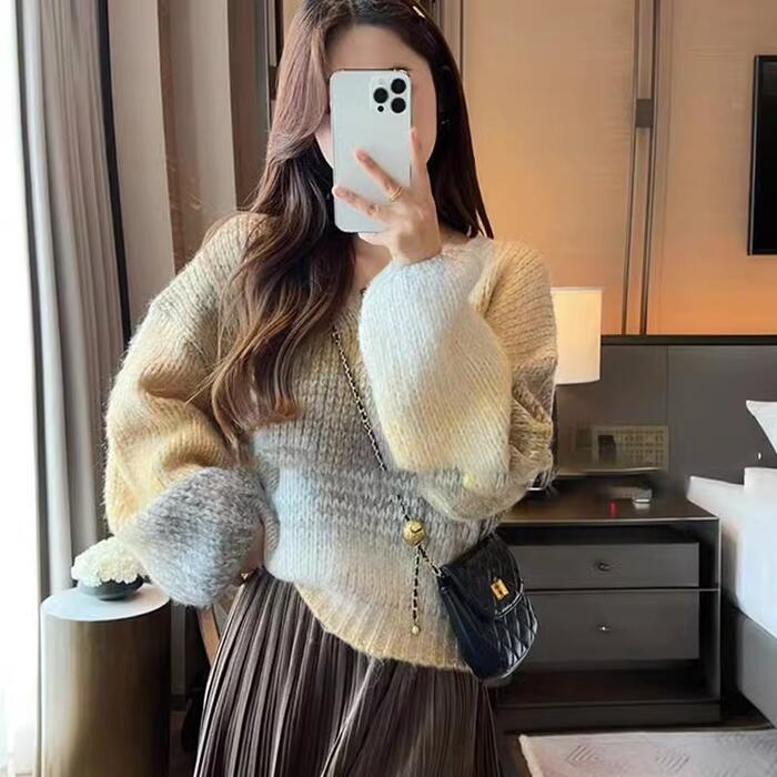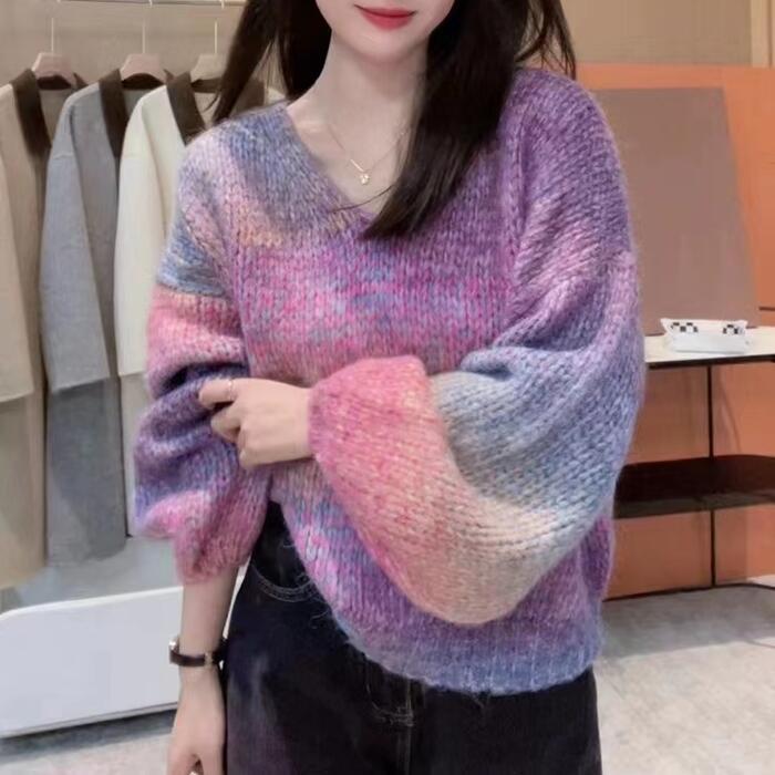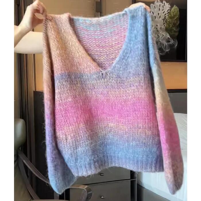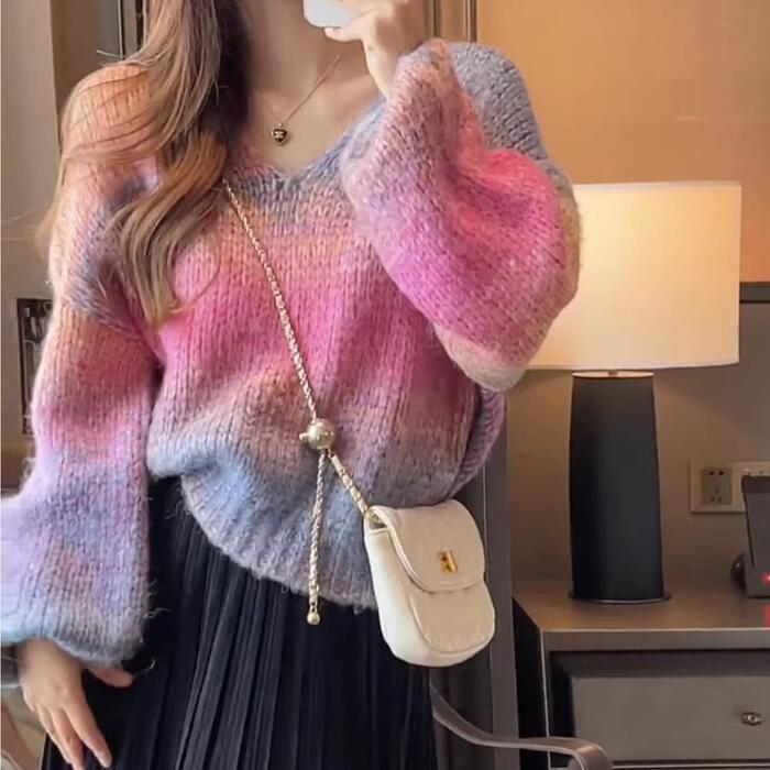 グラデーションカラーが目を惹くニットプルオーバー。