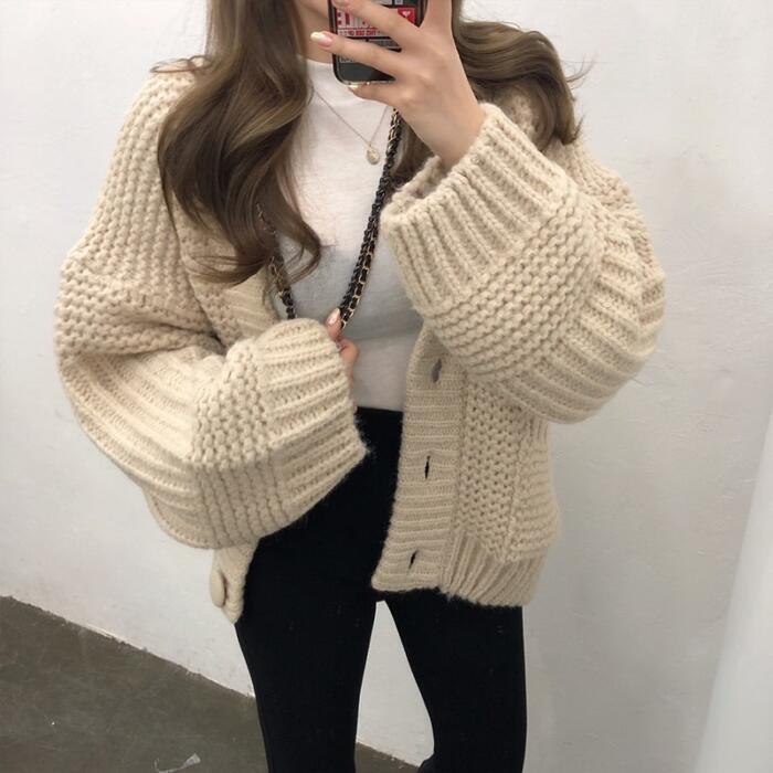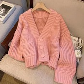 全3色 大きいサイズ シンプル トップス ニット カーディガン セーター レディース エレガント きれいめ カジュアル 長袖 ローゲージ 大人 可愛い フェミニン ゆったり おしゃれ オーバーサイズ 体型カバー 韓国 ベージュ ピンク ブルー 青 春 秋 冬 20代 30代 40代 50代