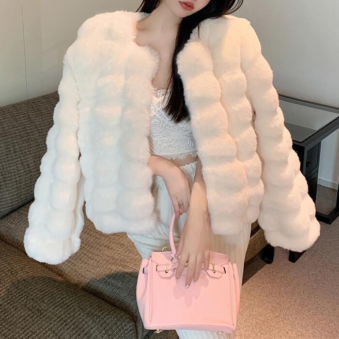 全2色 体型カバー アウター ファー コート ジャケット 羽織り レディース きれいめ カジュアル 長袖 大人 フェミニン ノーカラー おしゃれ シンプル フェイクファー お呼ばれ オケージョン ホワイト 白 ブラック 黒 春 秋 冬 20代 30代 40代 50代