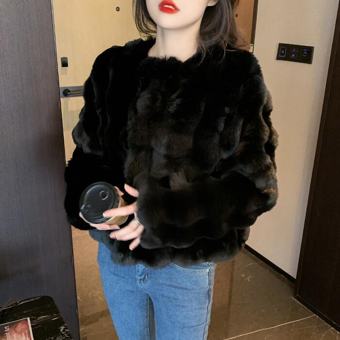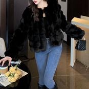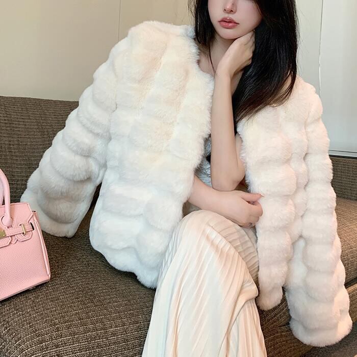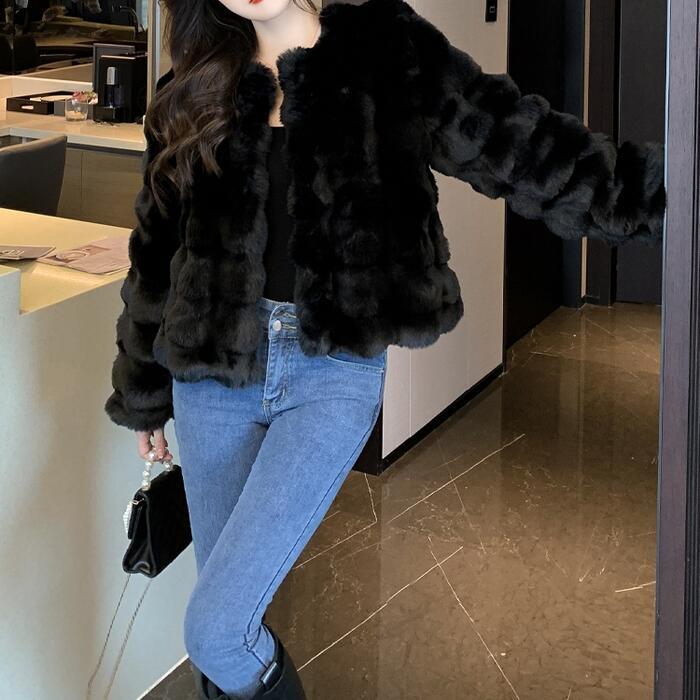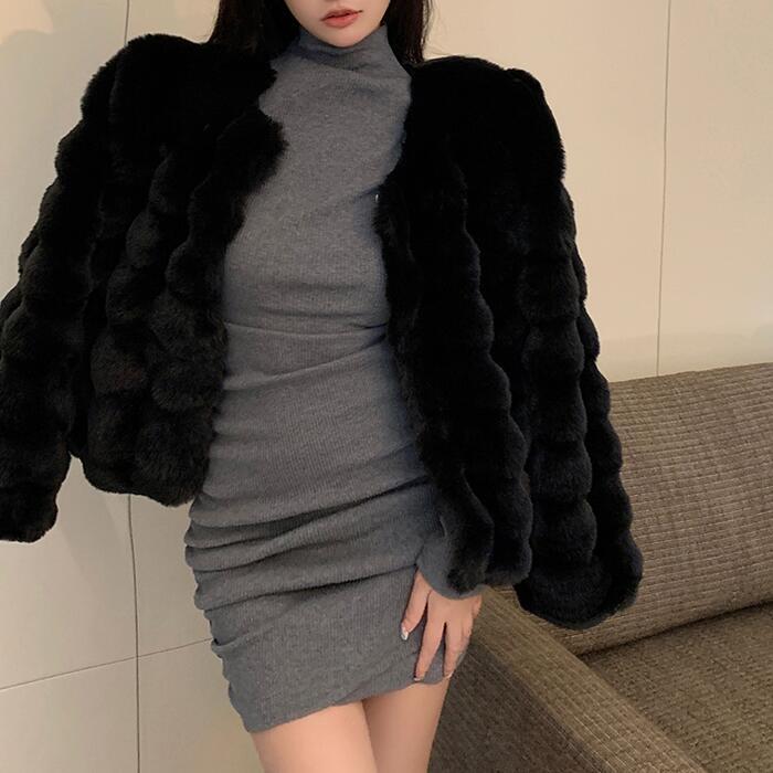 ふんわりやわらかな肌触りのフェイクファーコート。